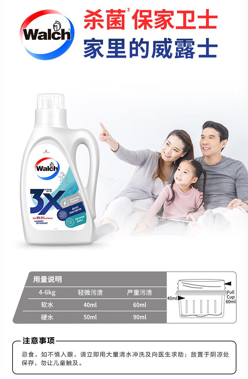 商品名称:Walch/威露士3X除菌洗衣液1L 11001010049