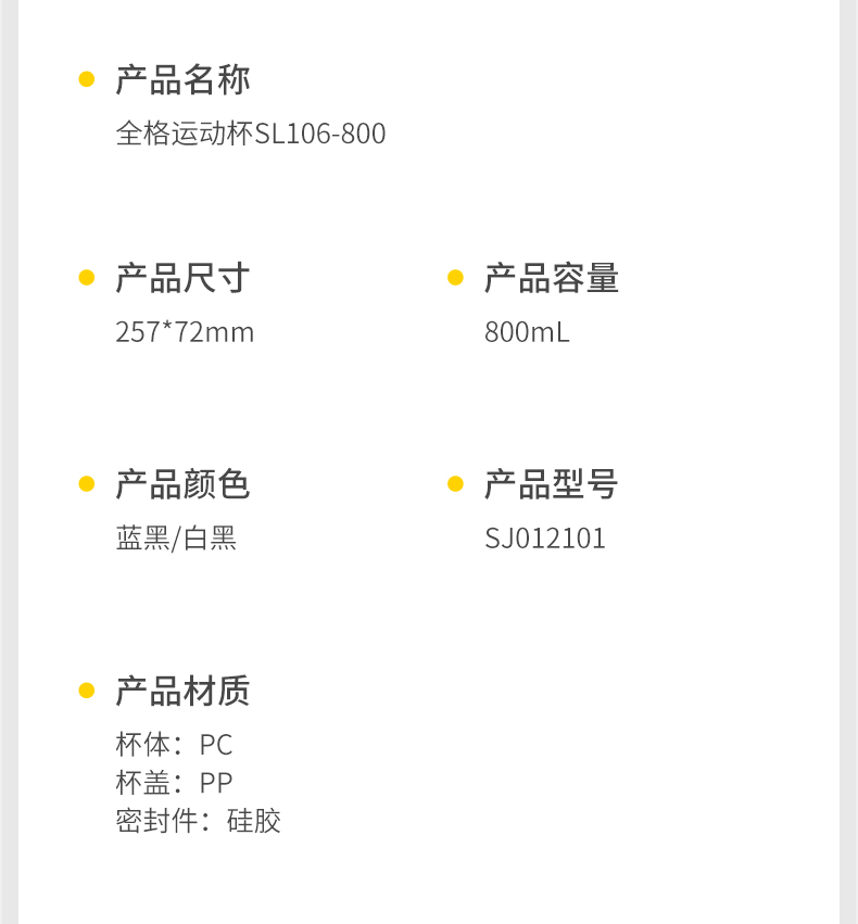 商品名称:Quange/全格800毫升运动杯SL106-800