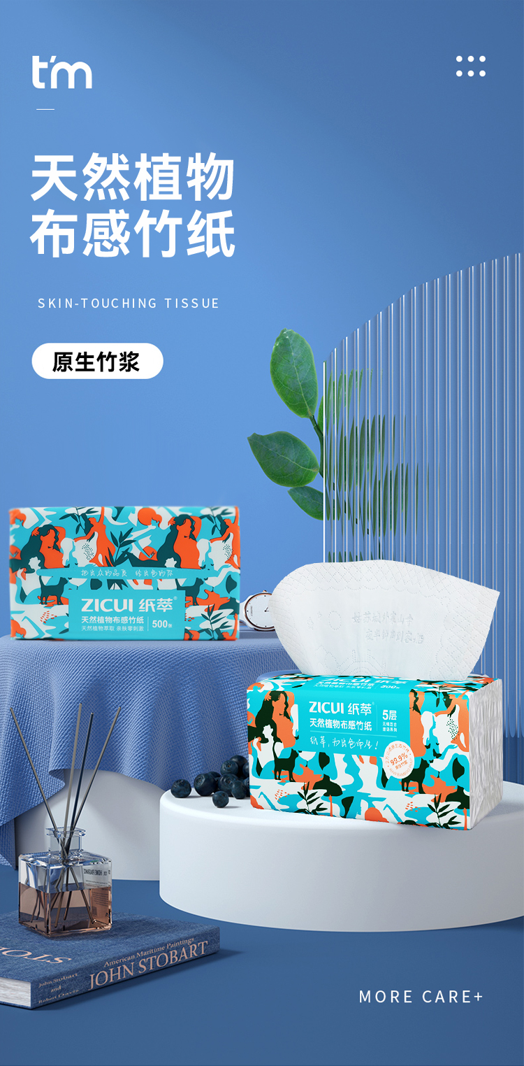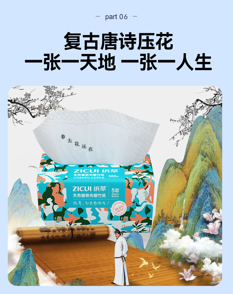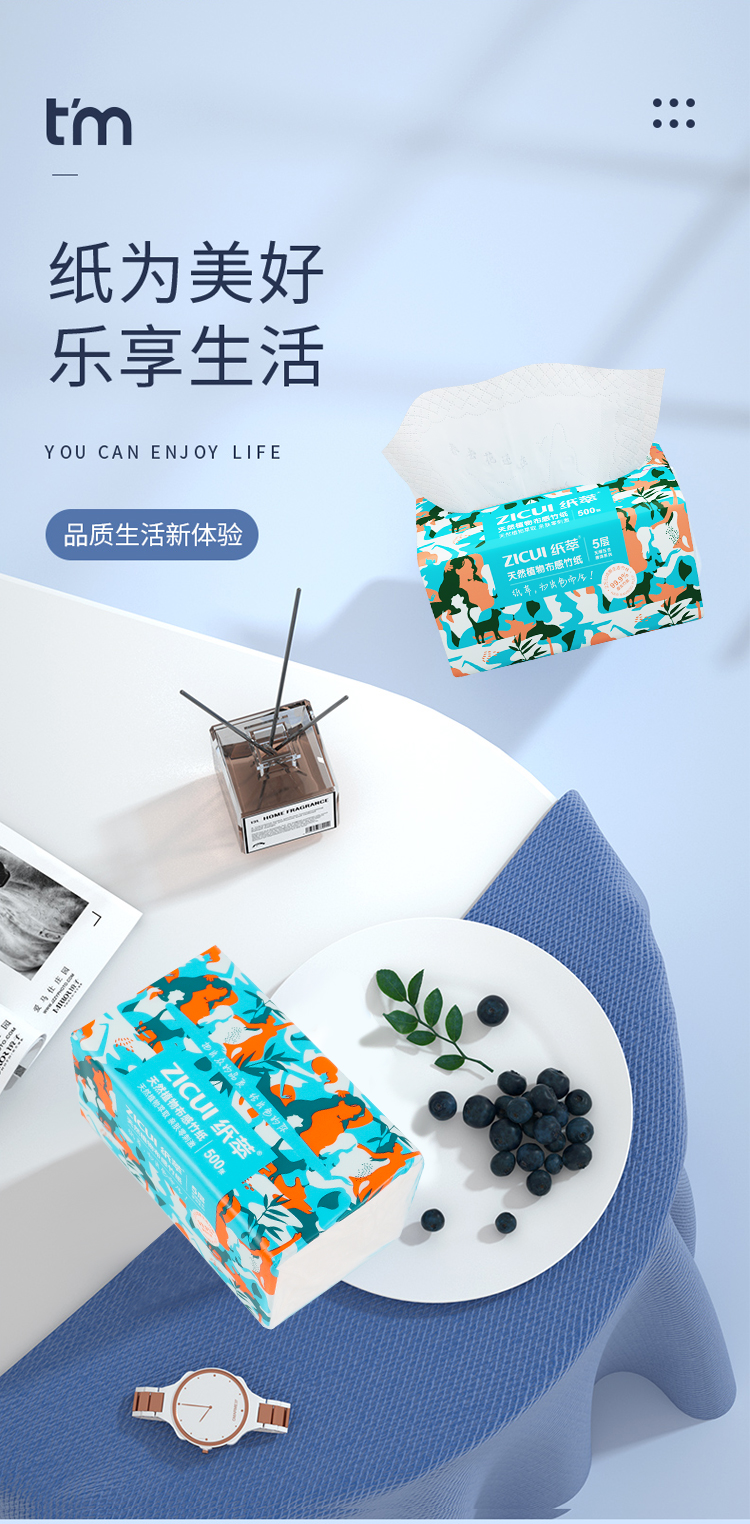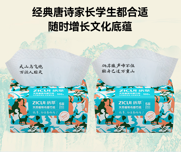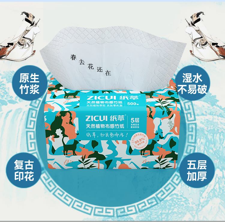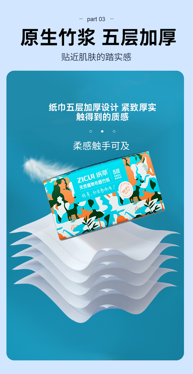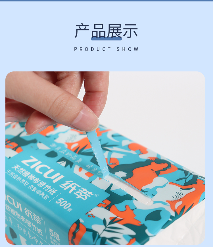 商品名称:ZHICUI/纸萃5层天然植物布感竹抽纸100抽*10包