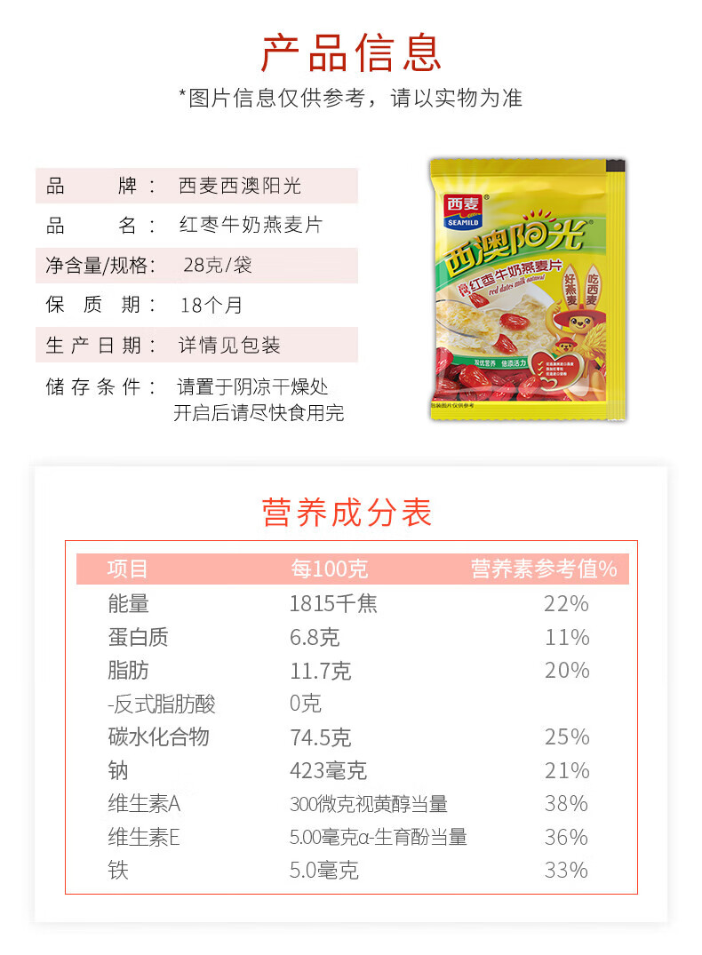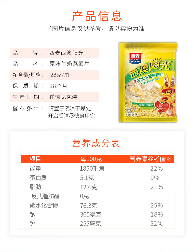 商品名称:SEAMILD/西麦即食营养燕麦片28g*12包