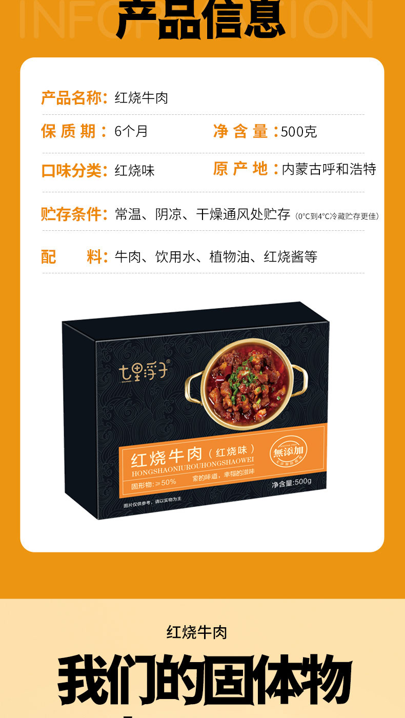 商品名称:七里浮子内蒙古红烧牛肉预制菜礼盒500g