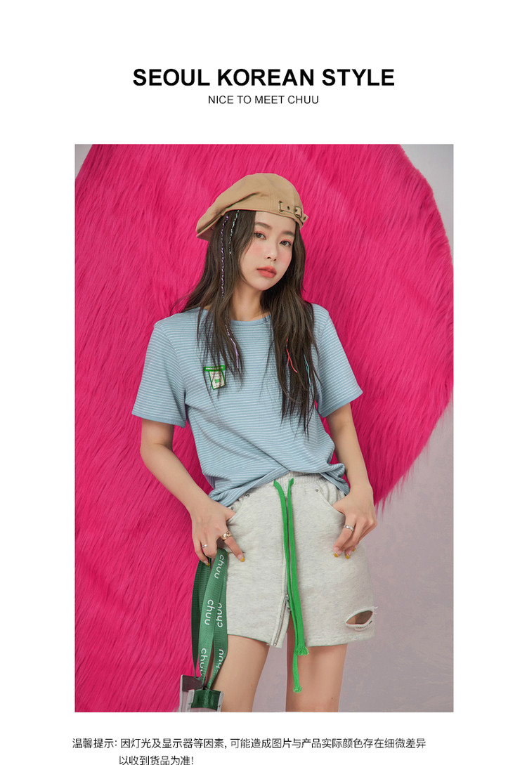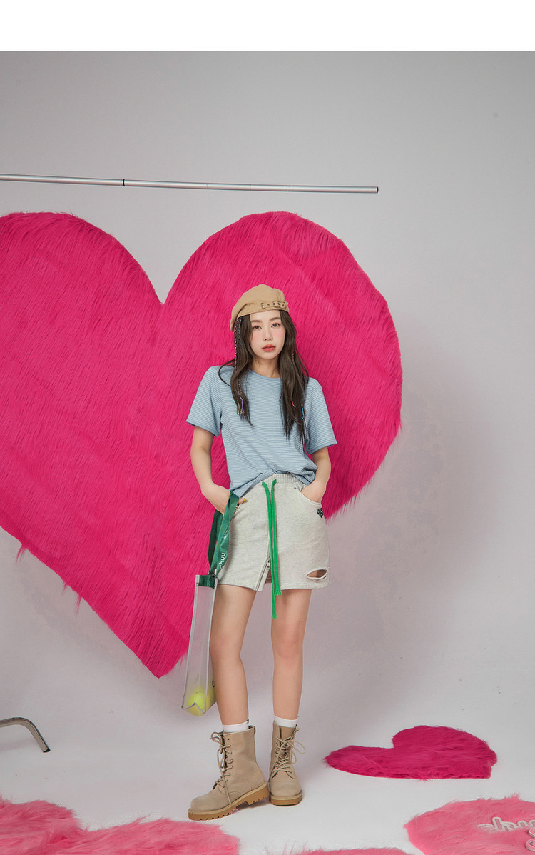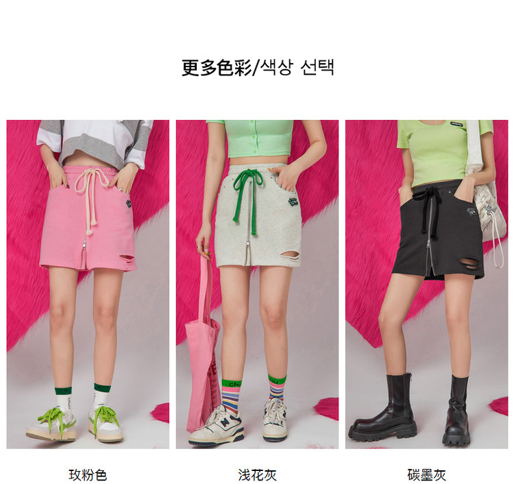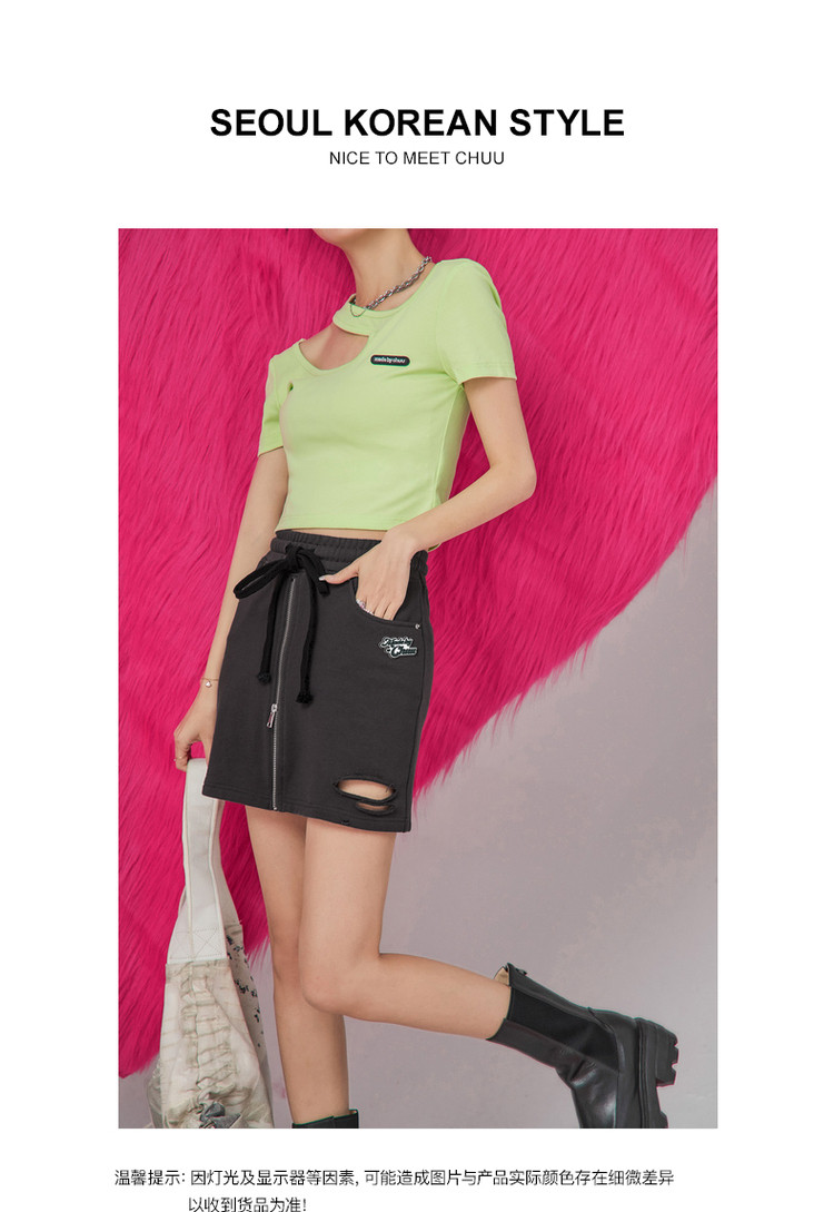 商品名称:CHUU高腰抽绳破洞半身裙女春夏秋韩版拉链a字短裙 277075