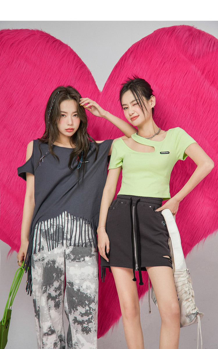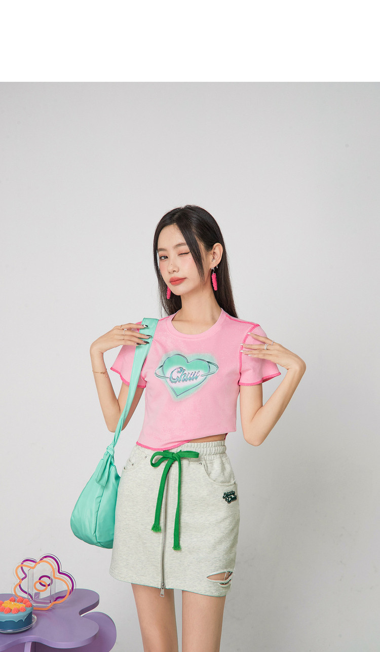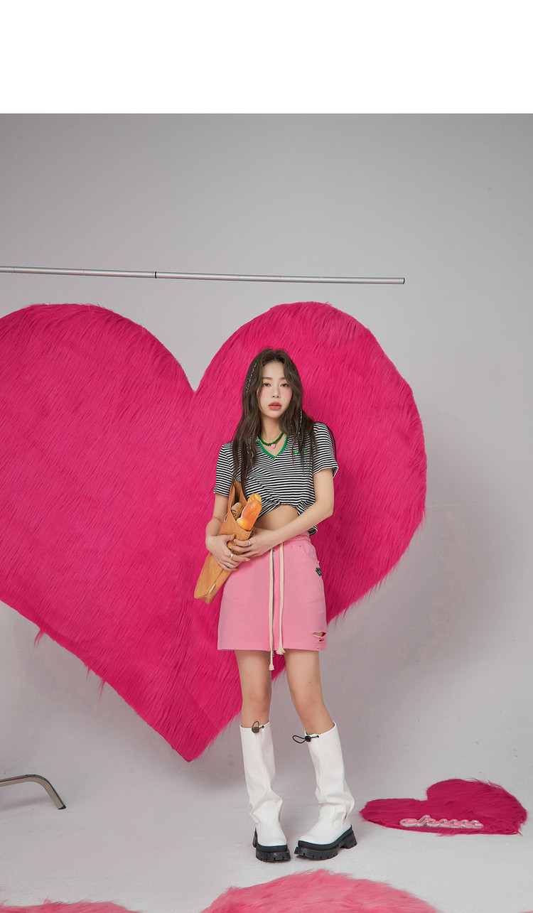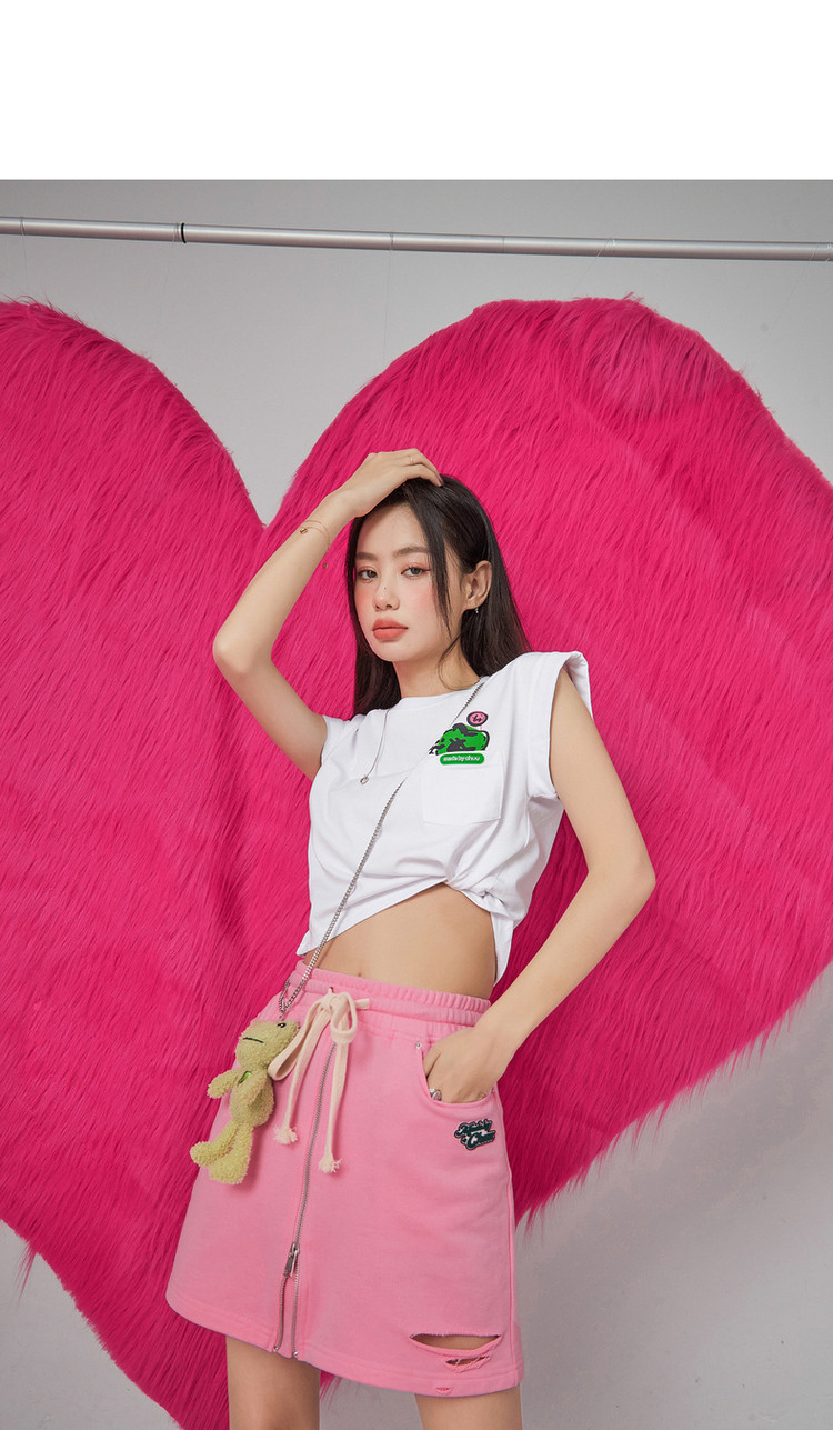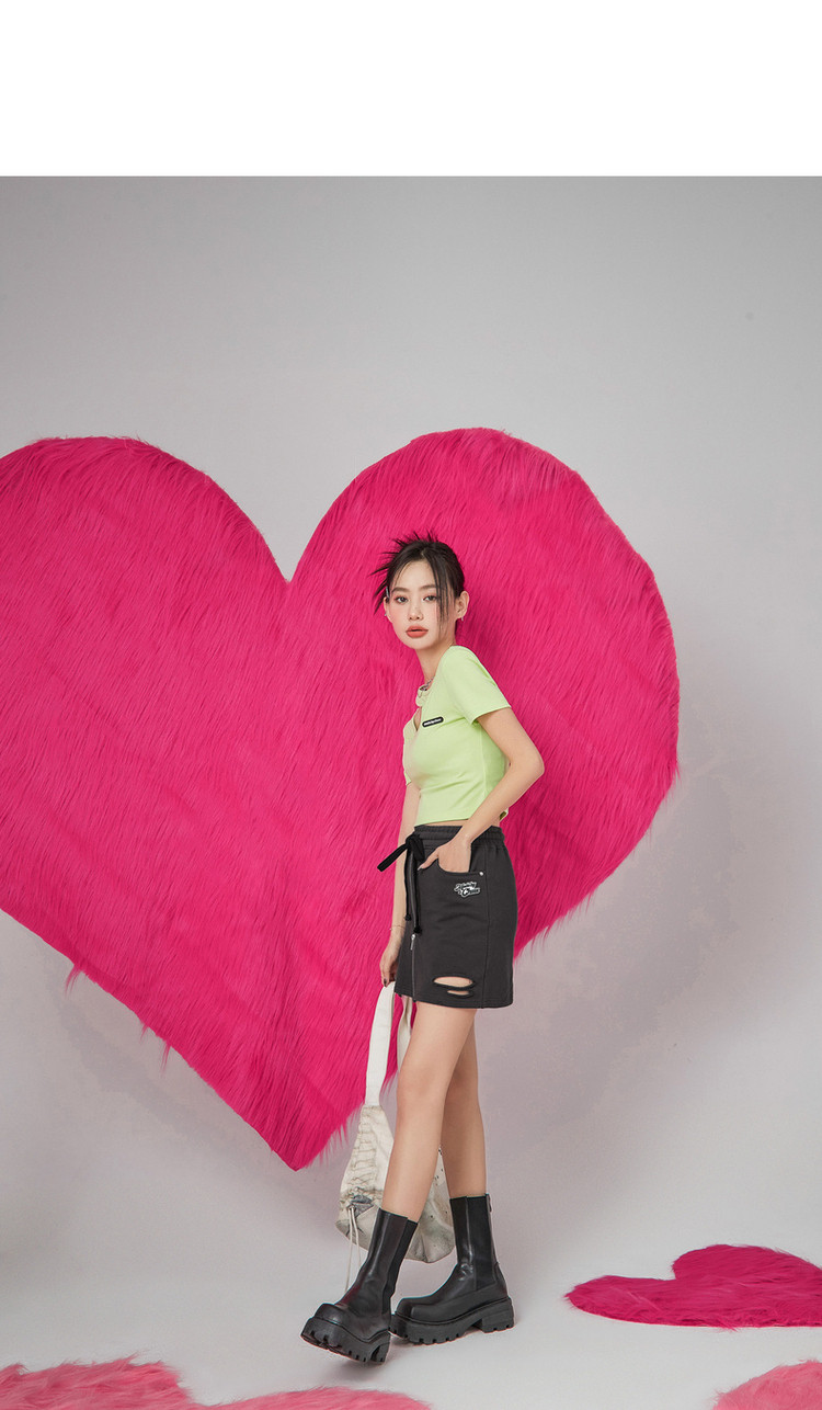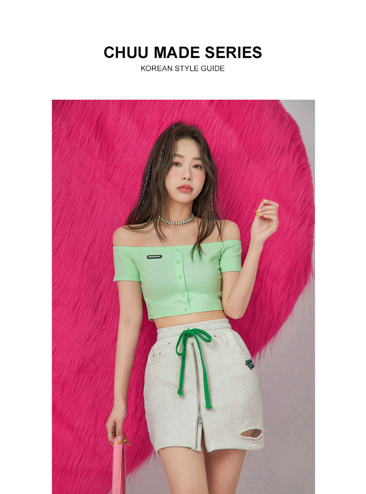 CHUU高腰抽绳破洞半身裙女春夏秋韩版拉链a字短裙 277075