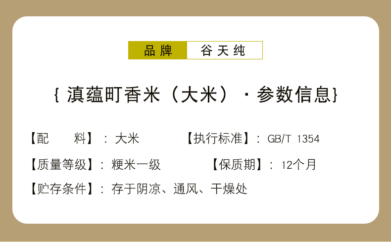 商品名称:谷天纯滇蕴町香大米5kg