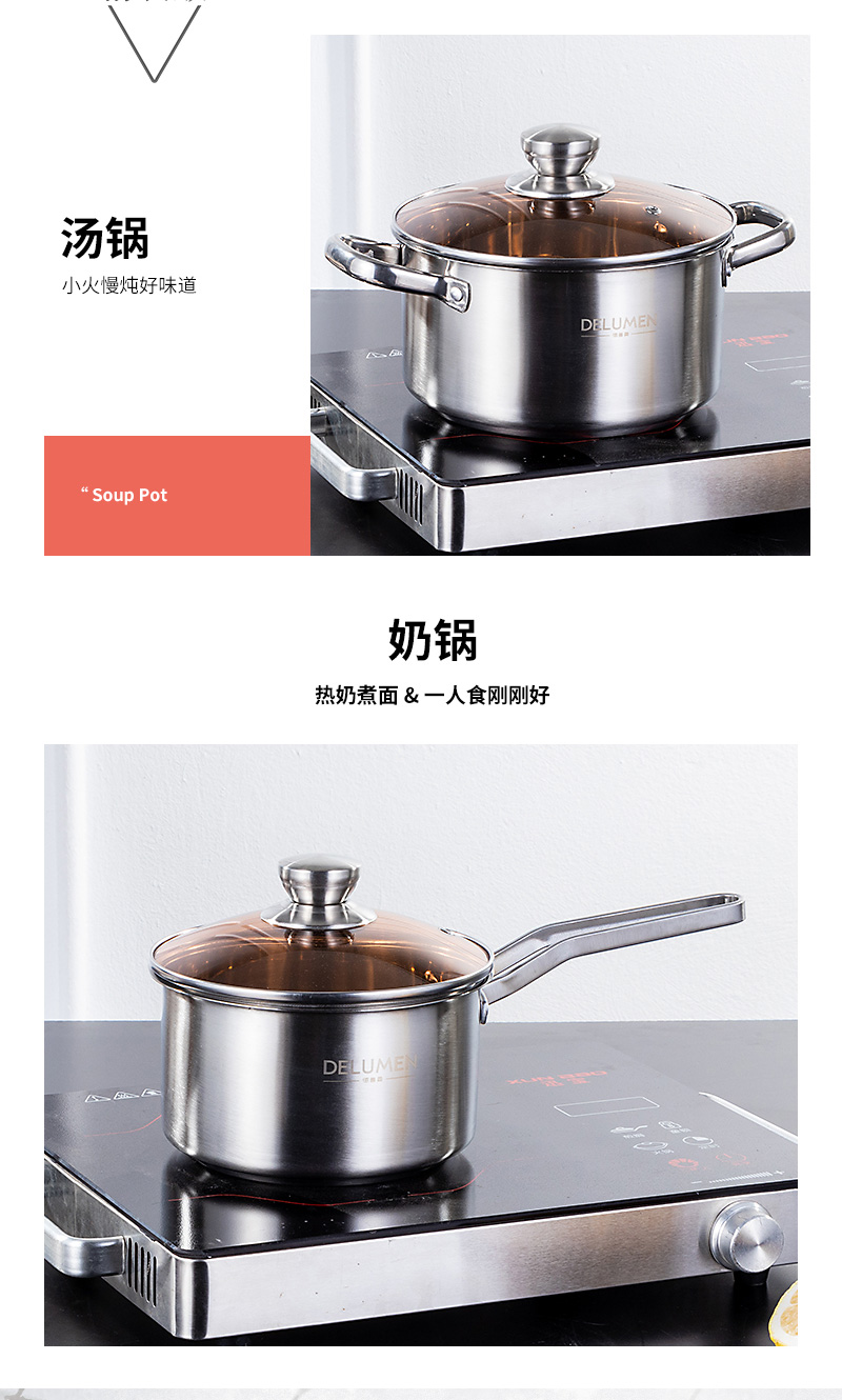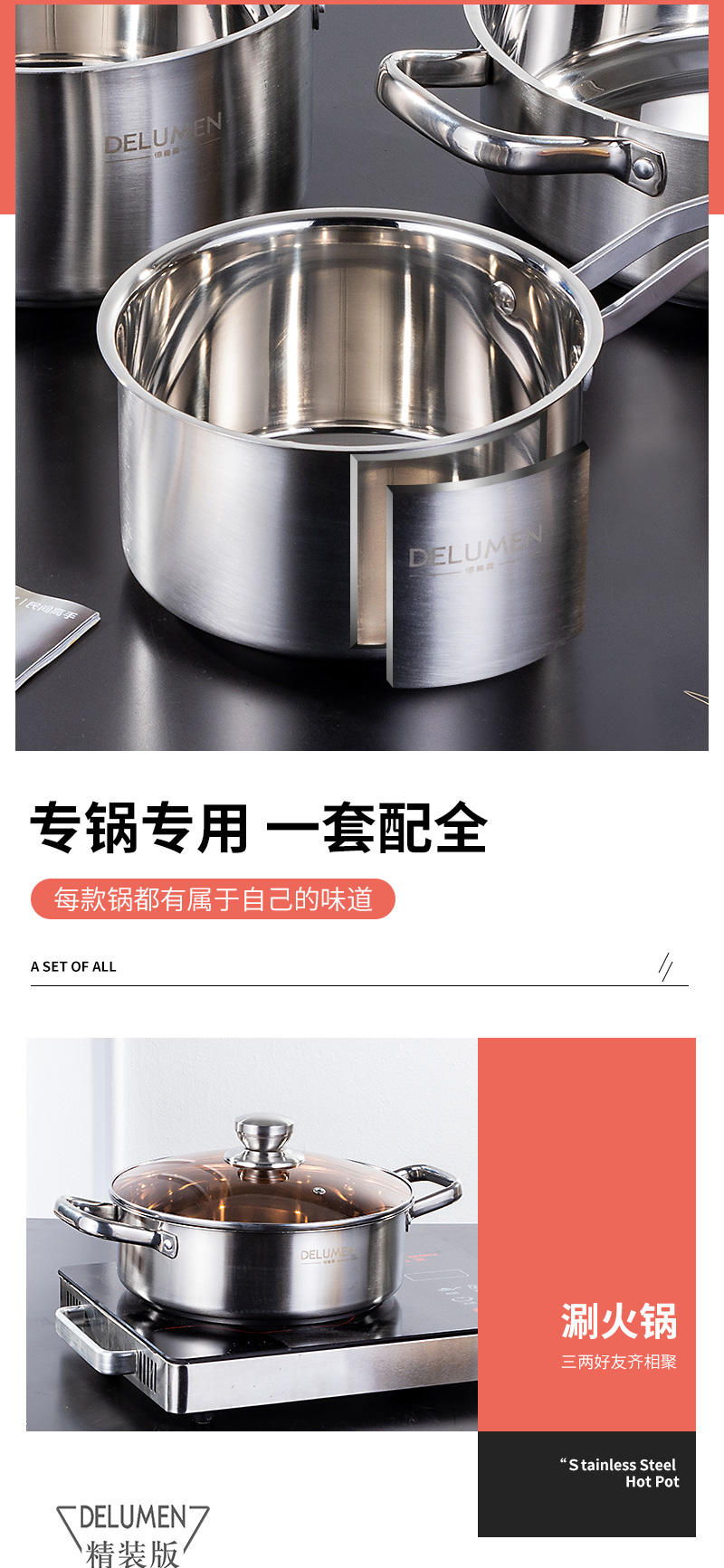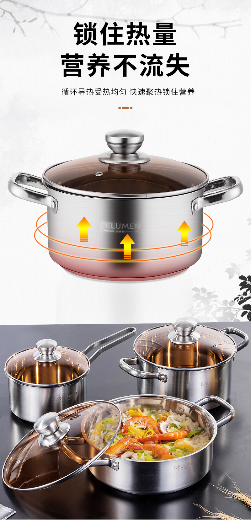 商品名称:DELUMEN/德鲁曼不锈钢公爵精装带盖锅具三件套DL-300
