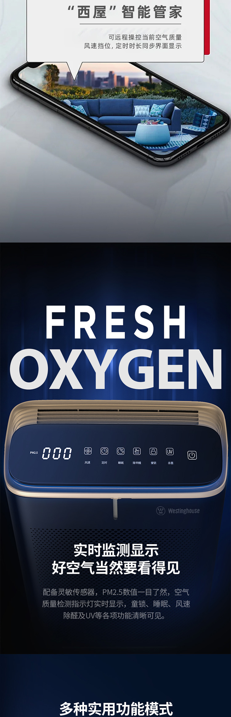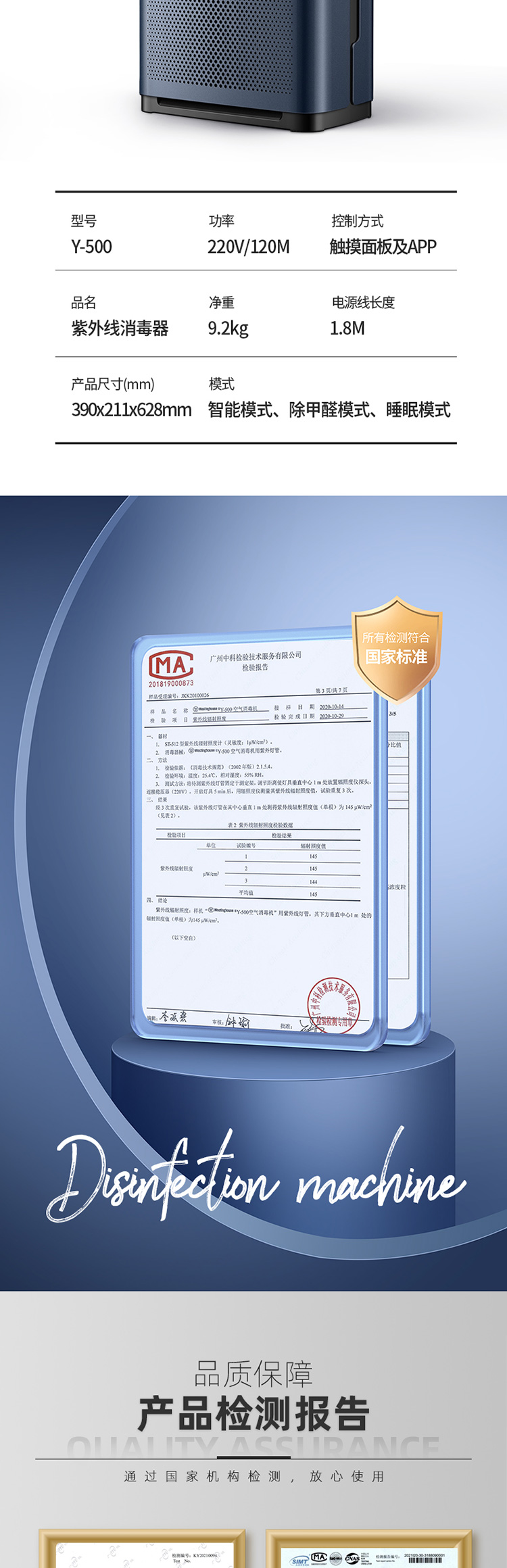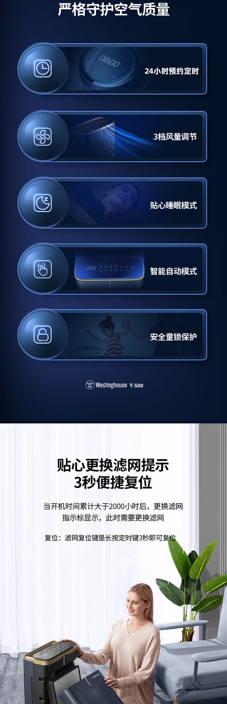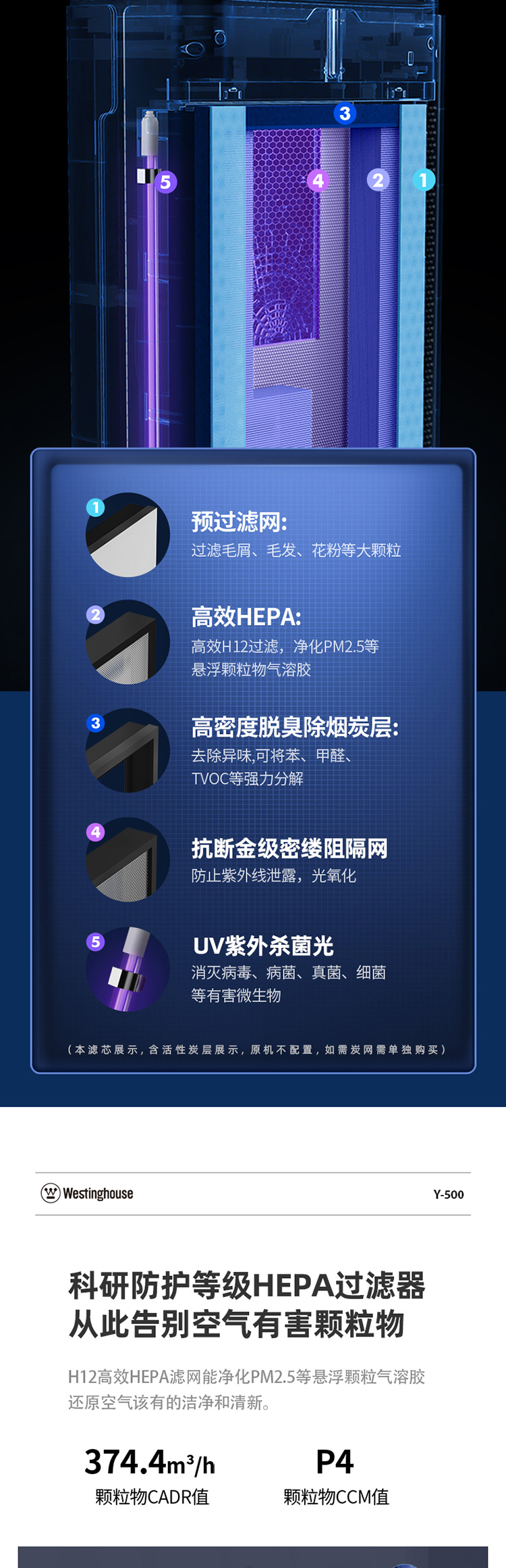 商品名称:Westinghouse/西屋紫外线空气净化消毒机Y-500
