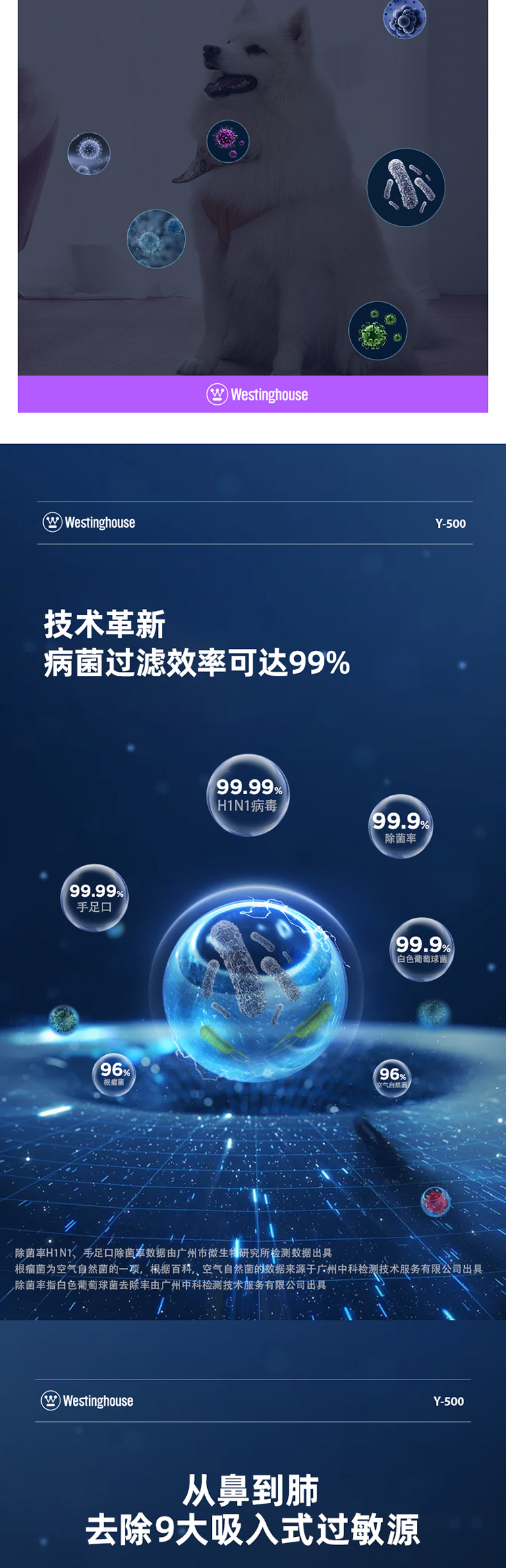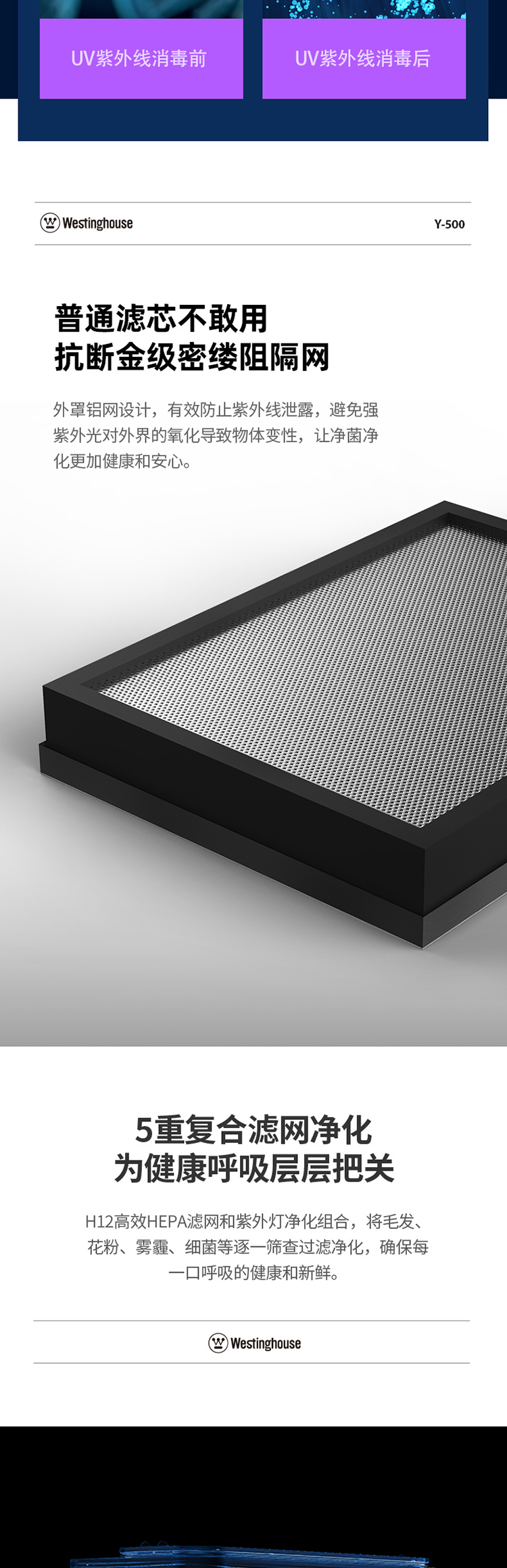 Westinghouse/西屋紫外线空气净化消毒机Y-500