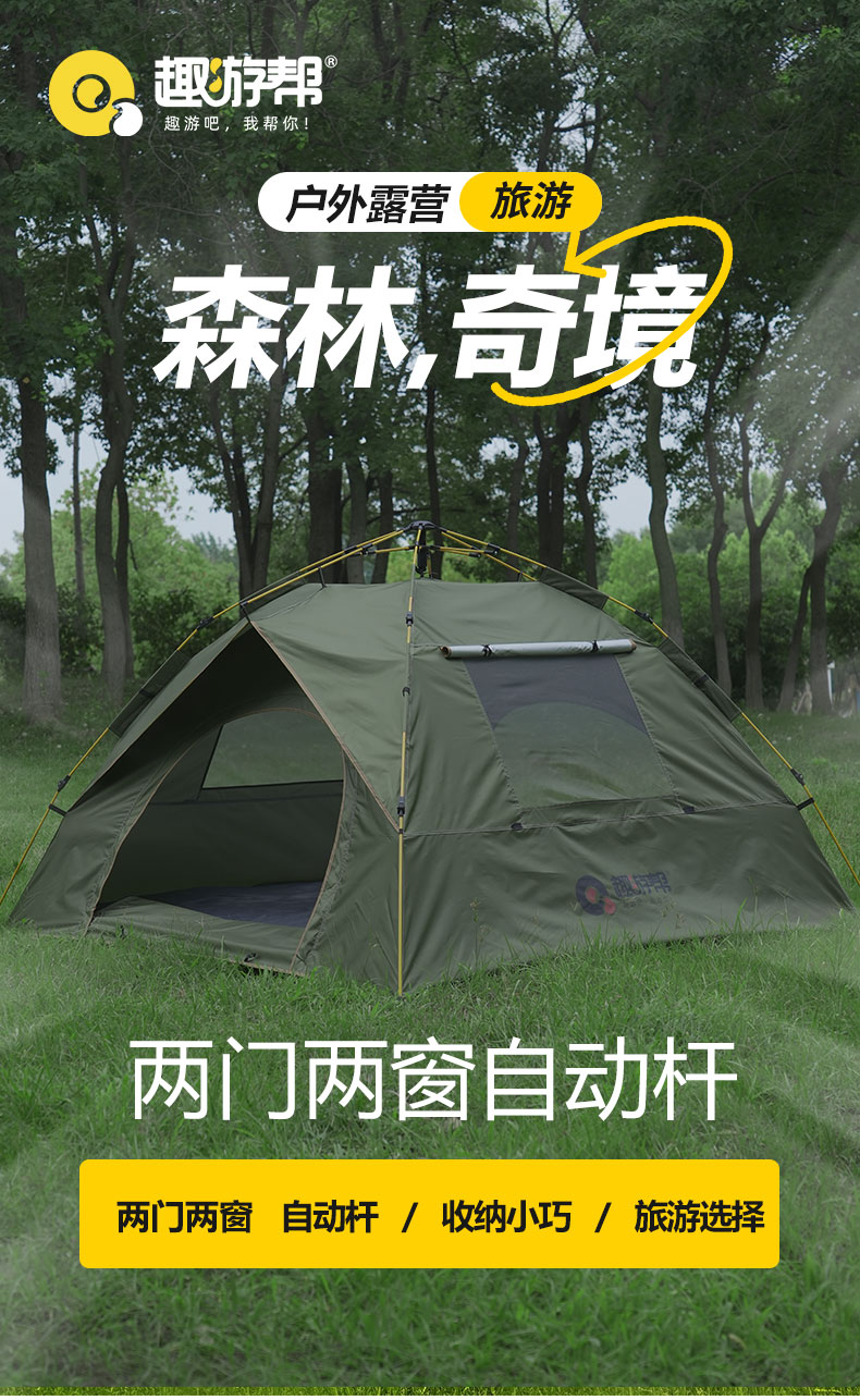 趣游帮两门两窗双层自动杆大号公园帐篷 Y058