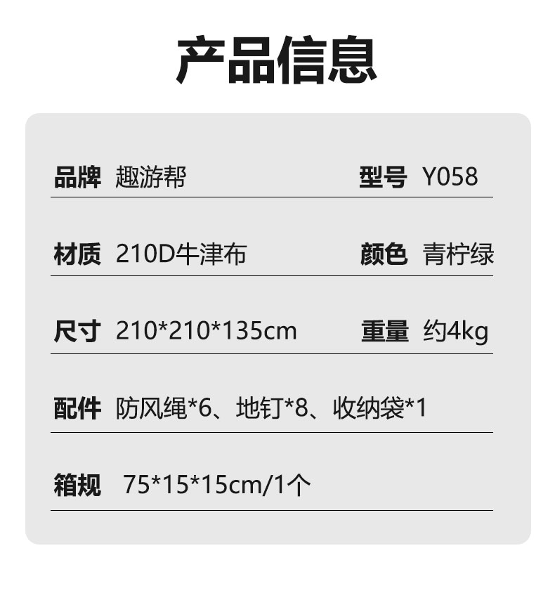 商品名称:趣游帮两门两窗双层自动杆大号公园帐篷 Y058