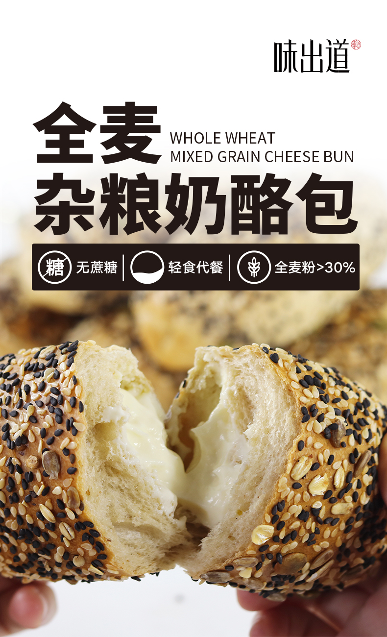 商品名称:味出道全麦杂粮奶酪包整箱450g