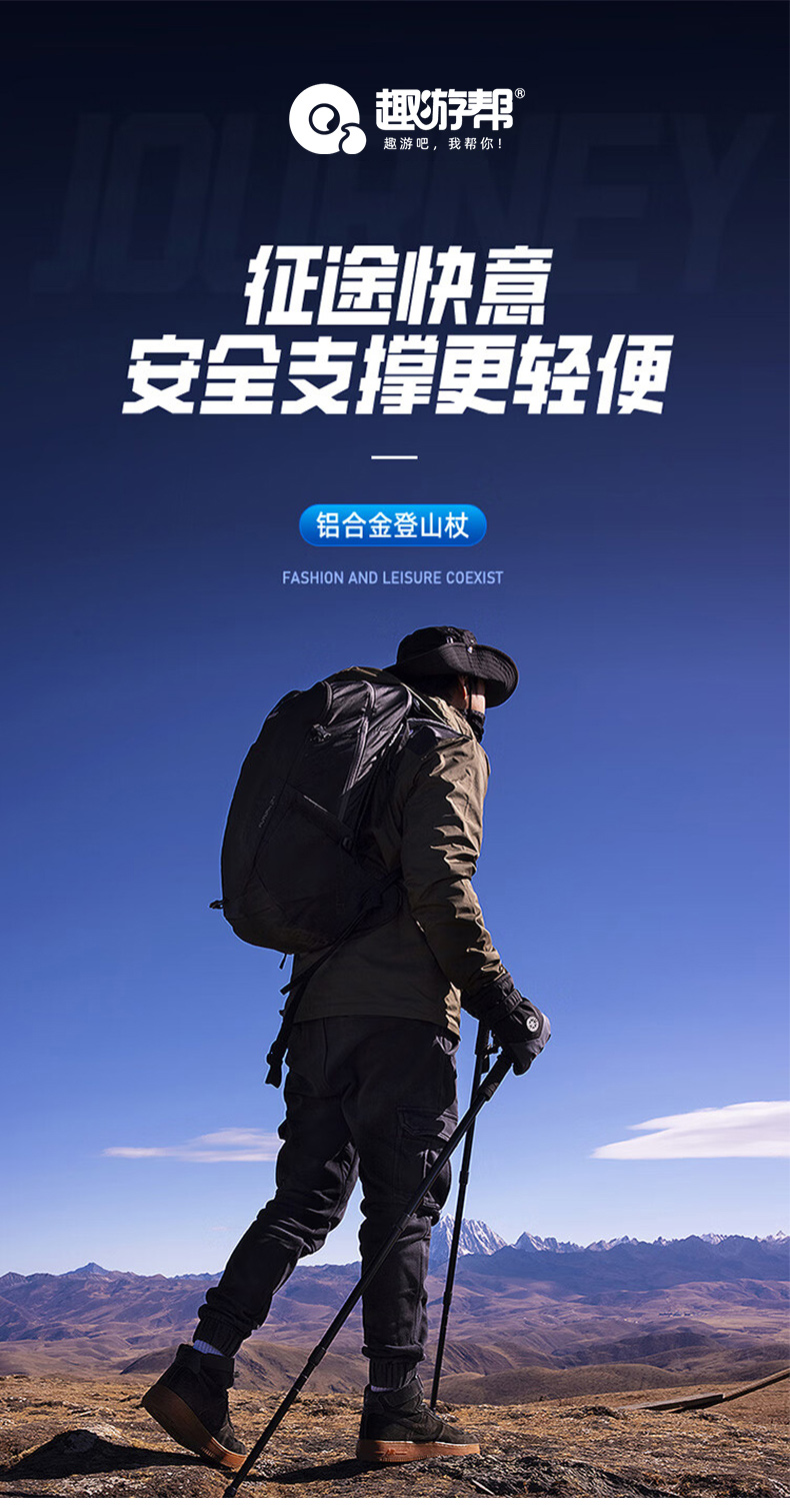 商品名称:趣游帮铝合金登山杖-黑色Q611