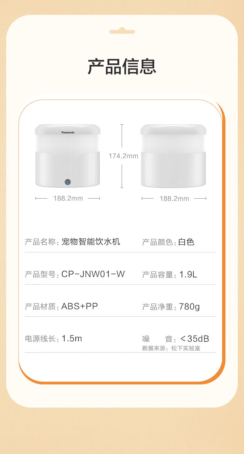 商品名称:Panasonic/松下1.9升智能宠物饮水机CP-JNW01-W