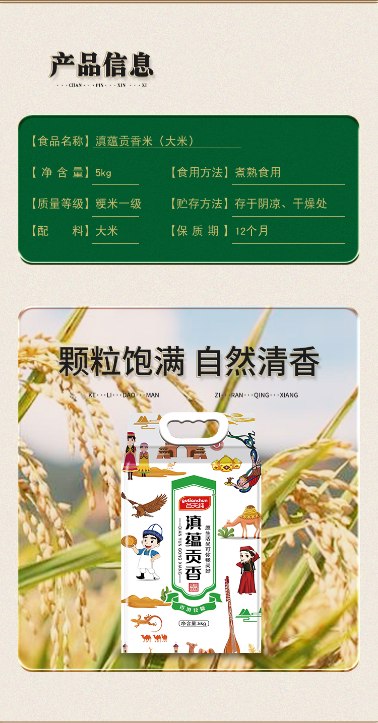 商品名称:谷天纯滇蕴贡香大米5kg