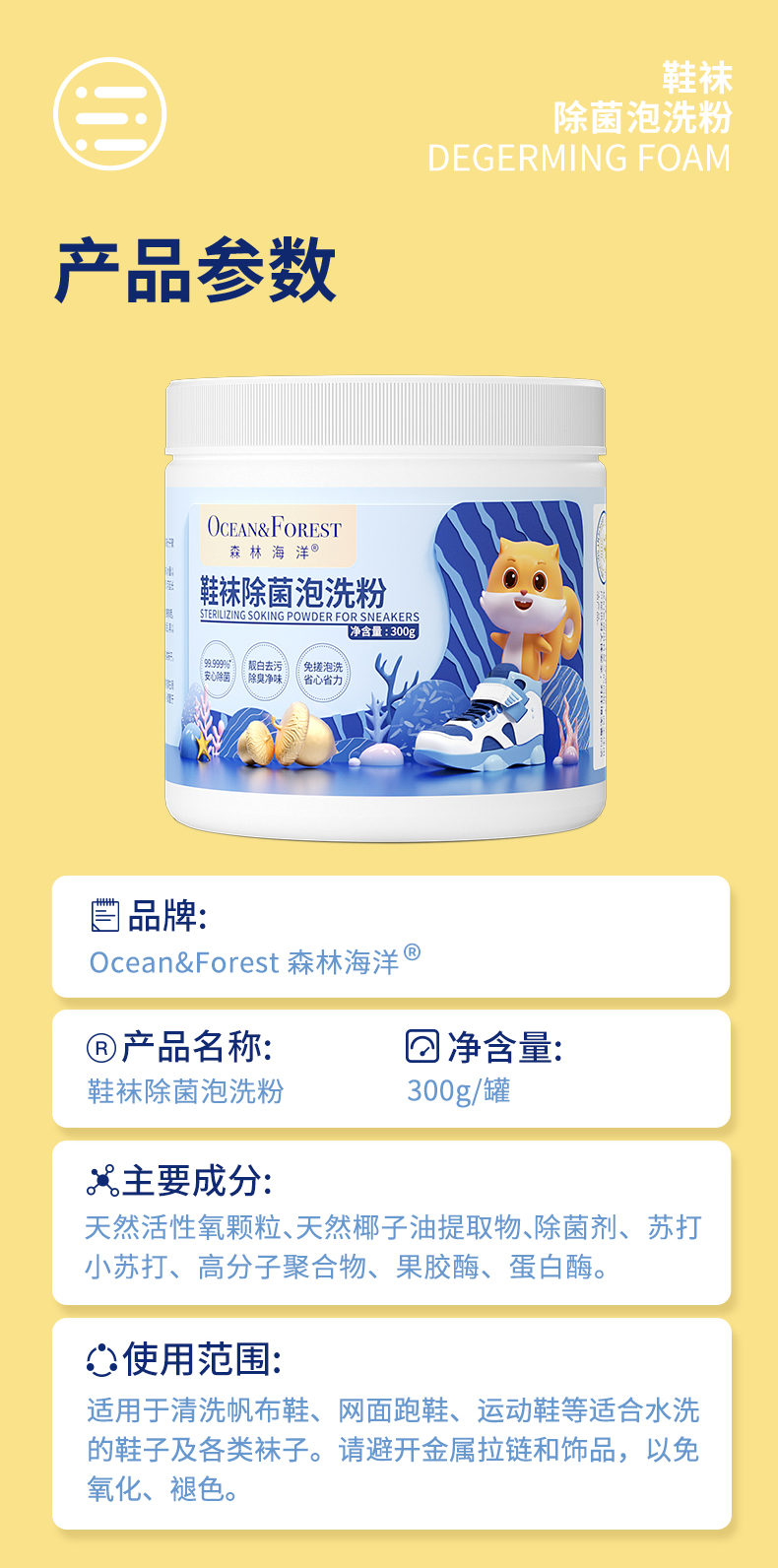 商品名称:森林海洋鞋袜除菌泡洗粉
