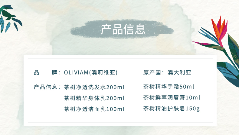 商品名称:Oliviam/澳莉维亚金色年华茶树洗护6件套(国际版)