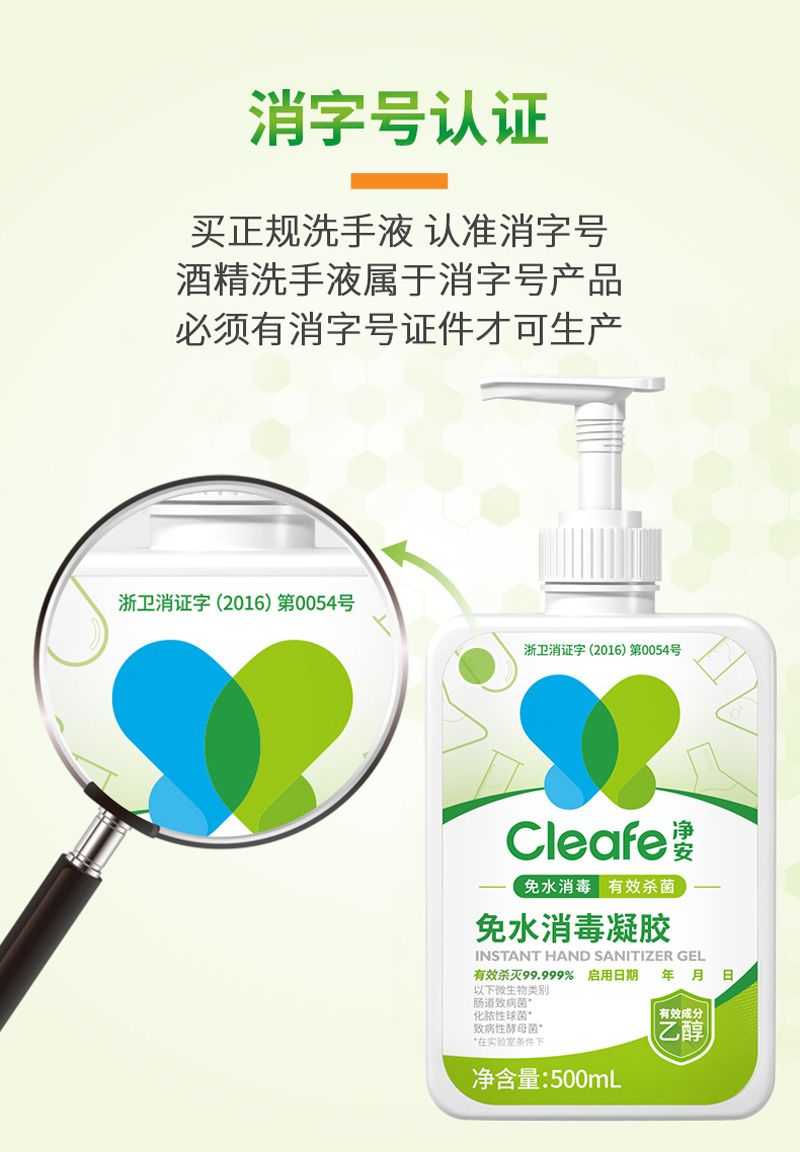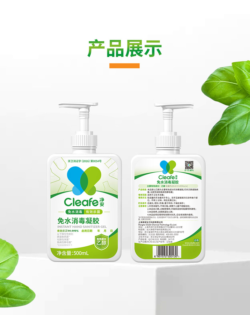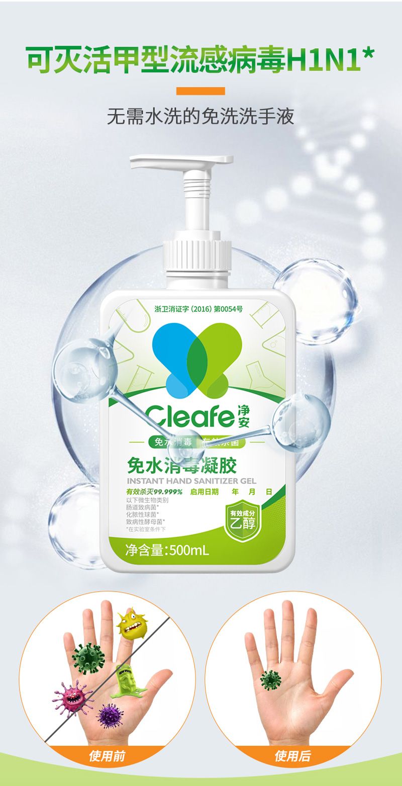 商品名称:Cleafe/净安免水洗消毒凝胶500ml