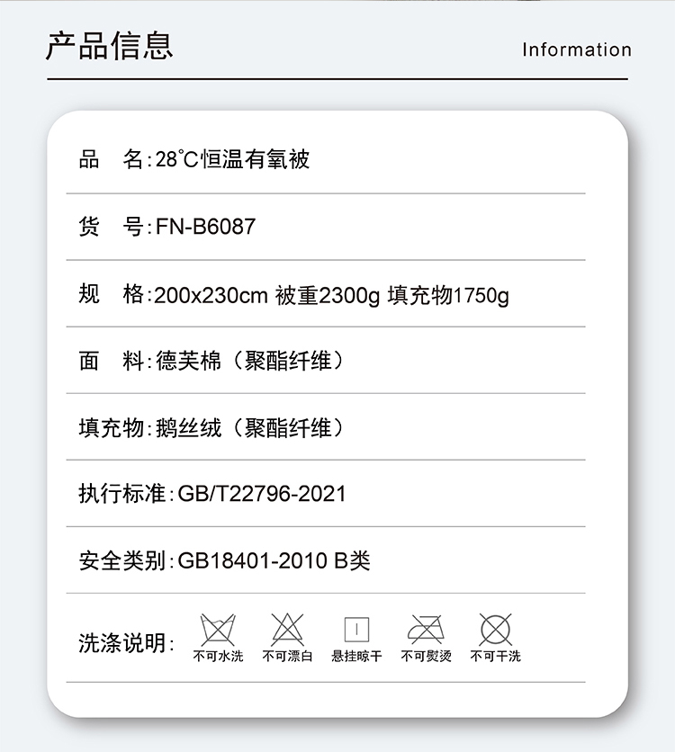 商品名称:faunen/芳恩28℃恒温有氧被200*230cm 2300g