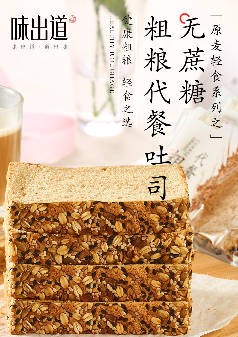 商品名称:味出道粗粮代餐吐司整箱500g*2箱