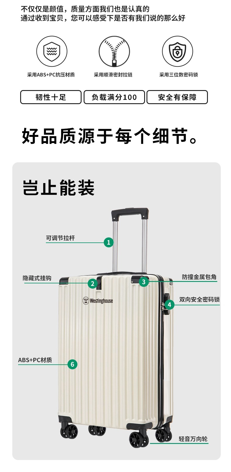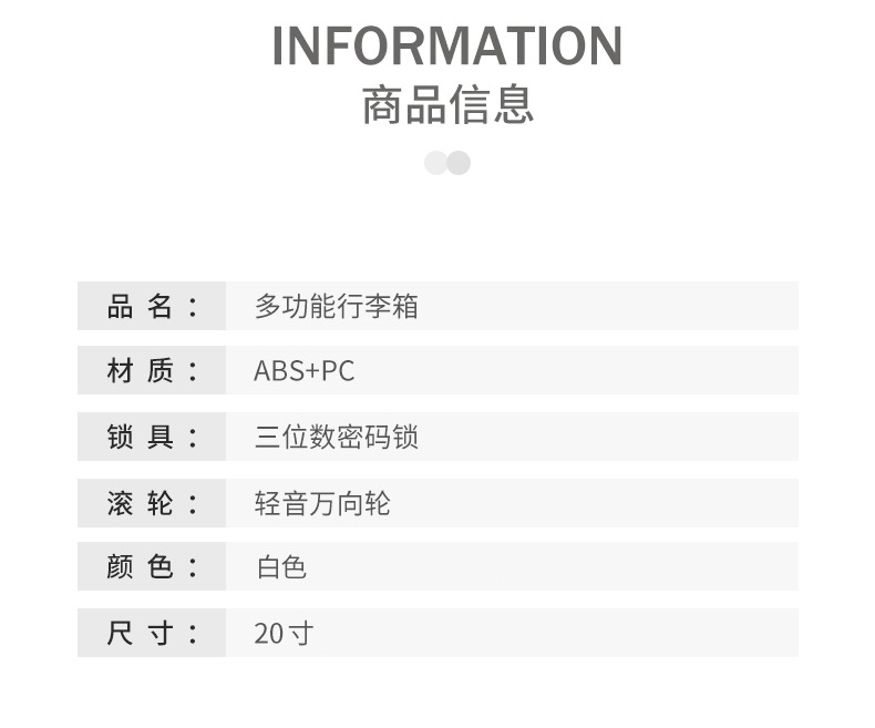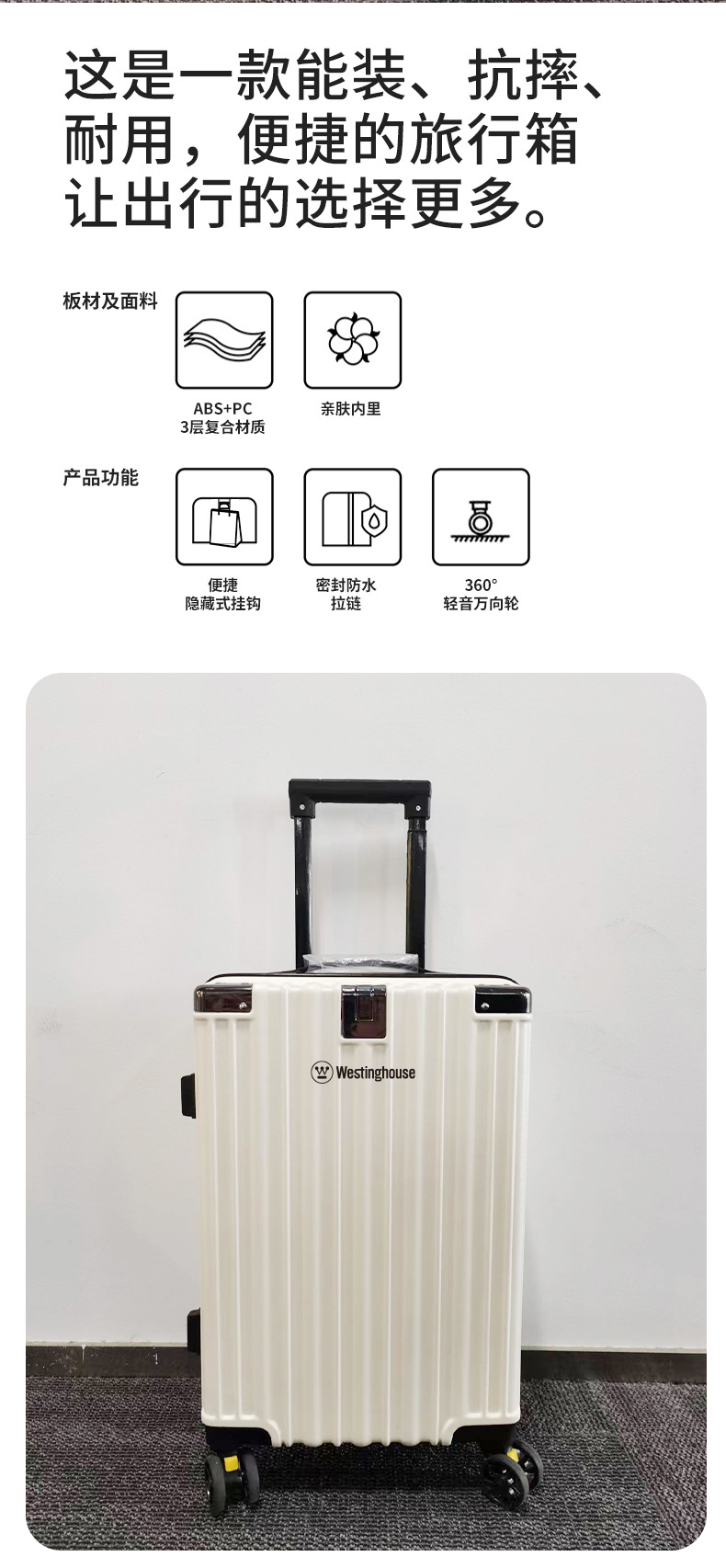 商品名称:Westinghouse/西屋多功能行李箱-白色XL07