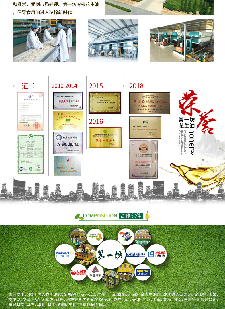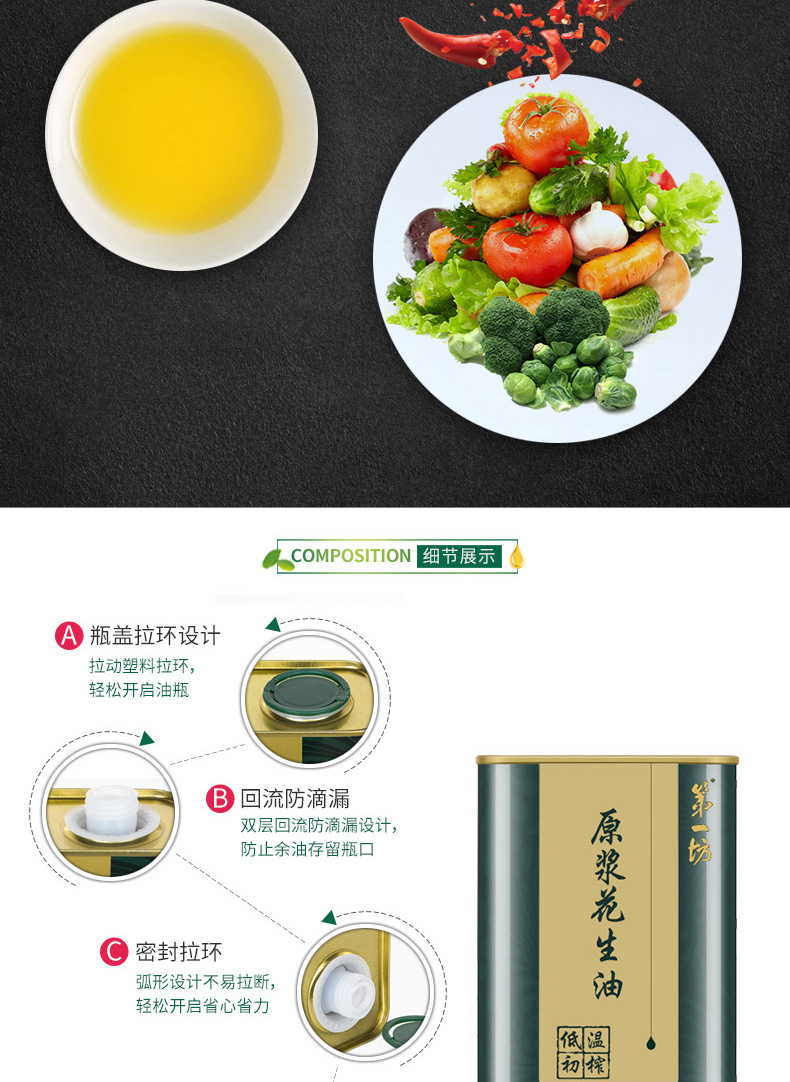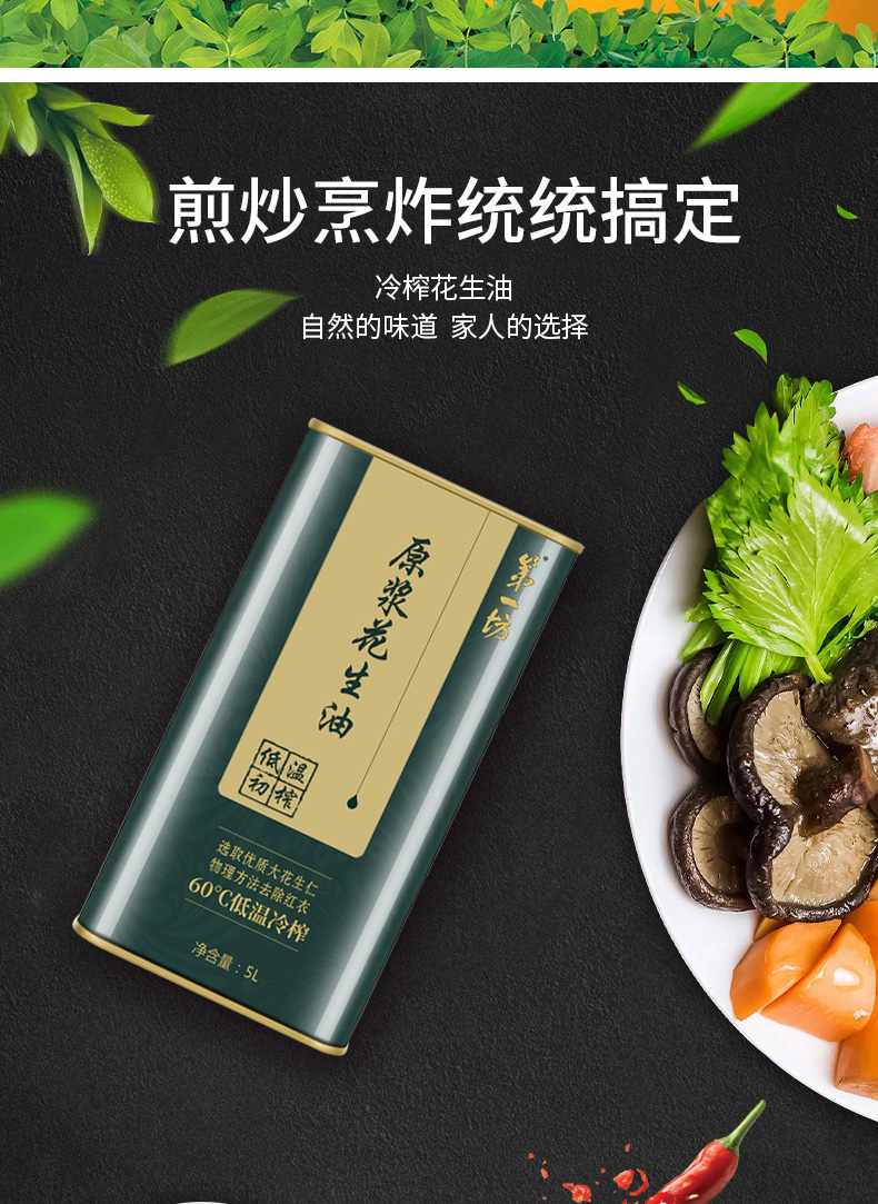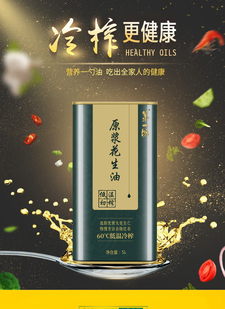 商品名称:【京东/顺丰配送】第一坊冷榨原浆花生油铁罐装5L