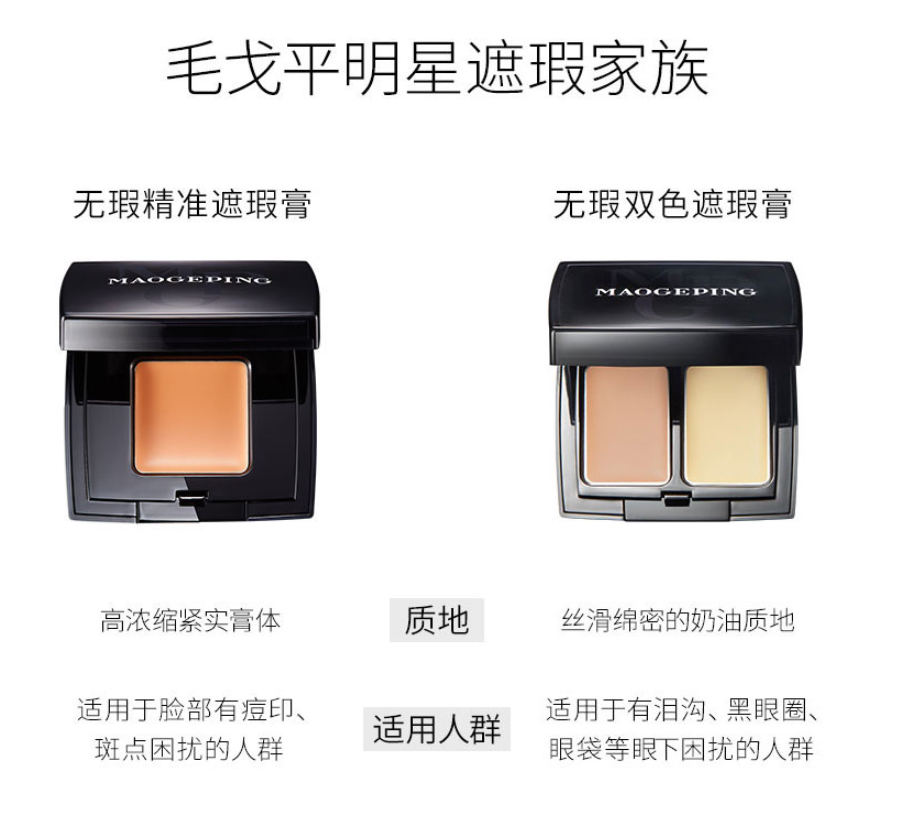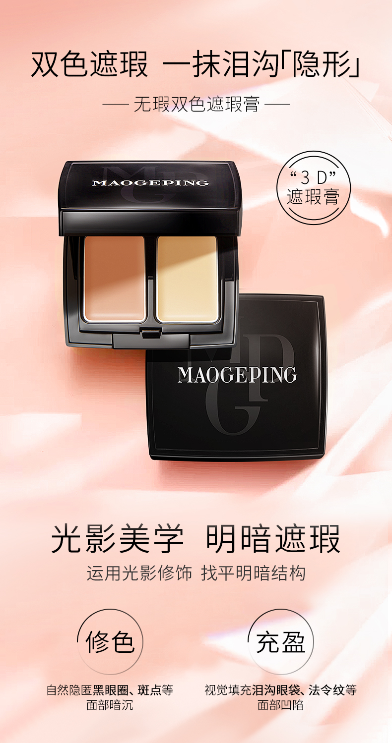 商品名称:Mgpin/毛戈平 双色遮瑕膏 3g 双色调和 高倍遮瑕 新旧随机