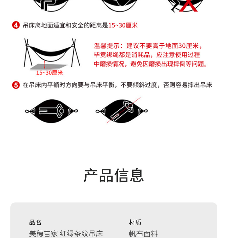 商品名称:美穗吉家红绿条纹吊床-彩虹色MIHH-2408130