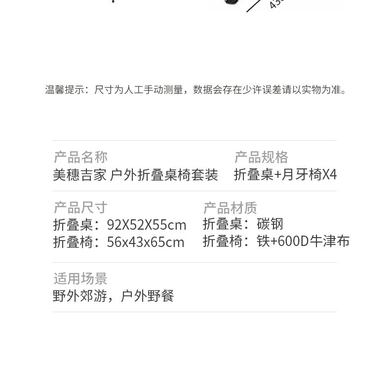 商品名称:美穗吉家户外折叠桌椅套装-月亮椅MIHH-2408017