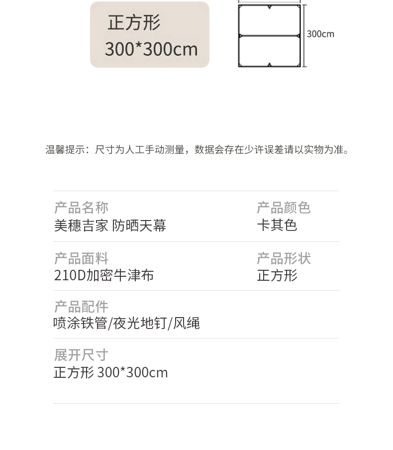 商品名称:美穗吉家防晒天幕-卡其色MIHH-2408051