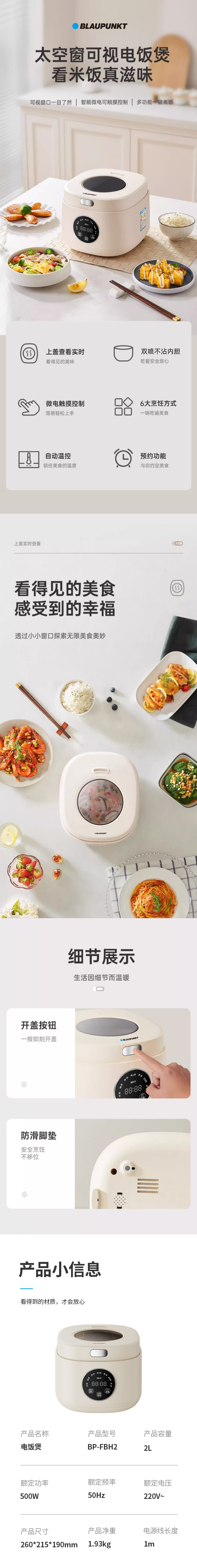 商品名称:【京东/顺丰配送】BLAUPUNKT/德国蓝宝2升智能可视电饭煲BP-FBH2