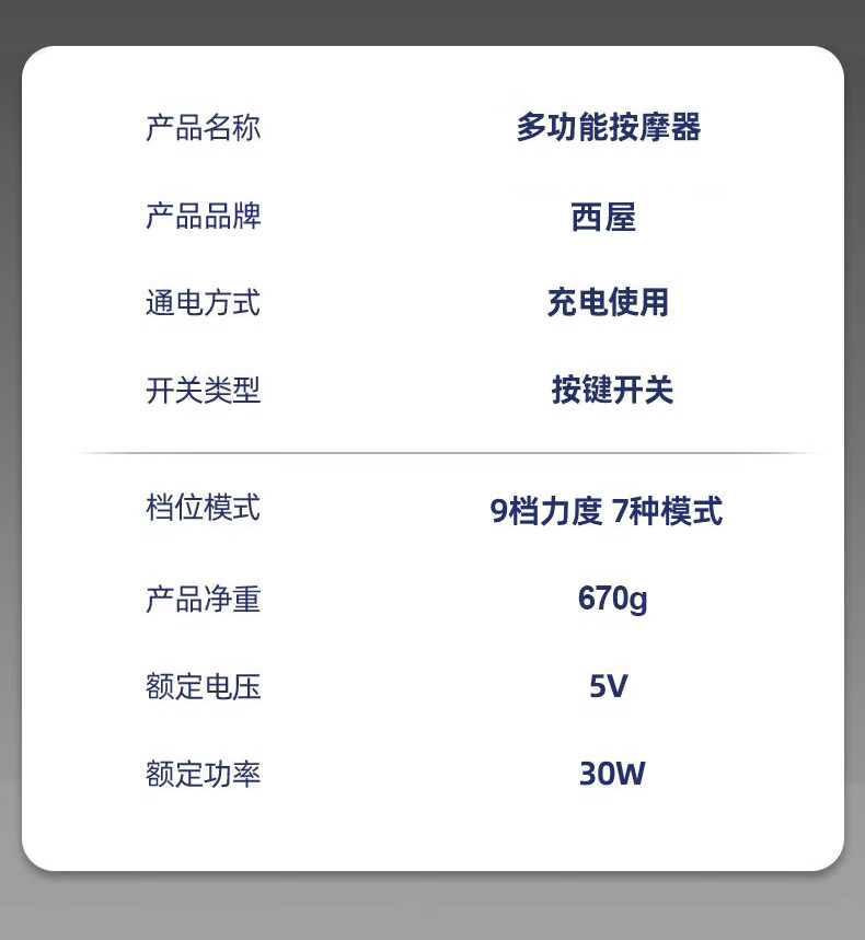 商品名称:Westinghouse/西屋多功能按摩器MA30-BU