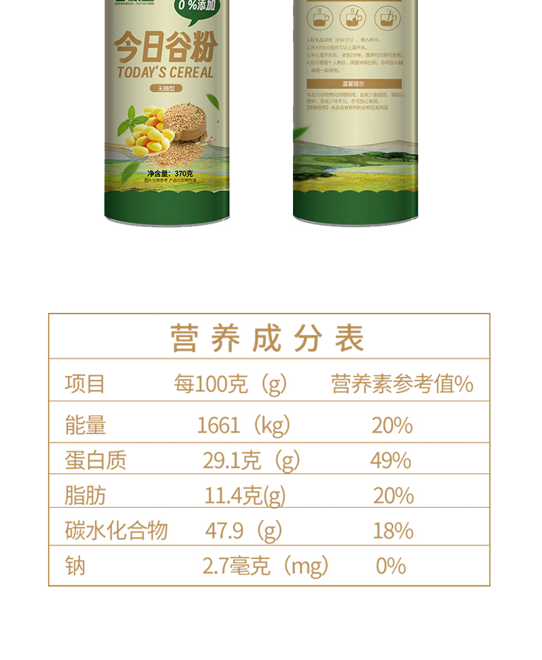 商品名称:今粮道黄豆燕麦粉370g(扶贫助农)