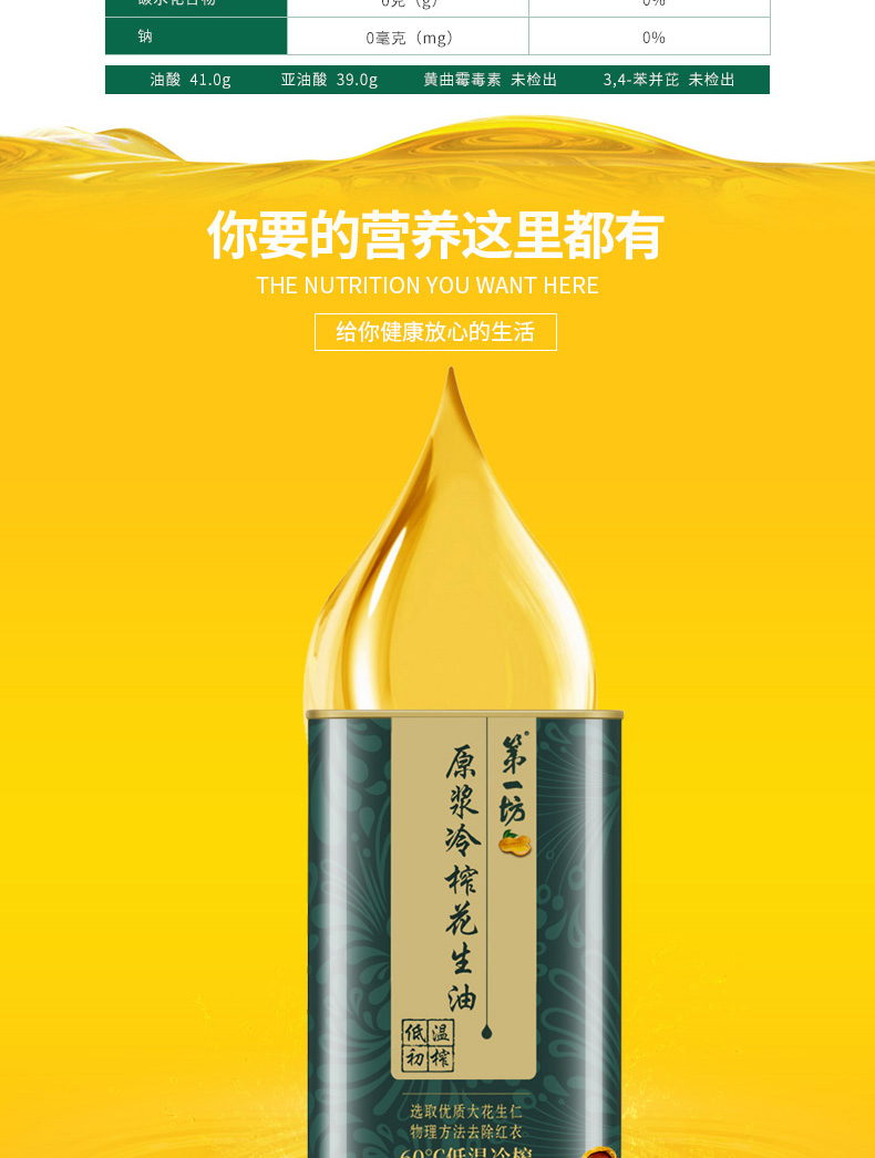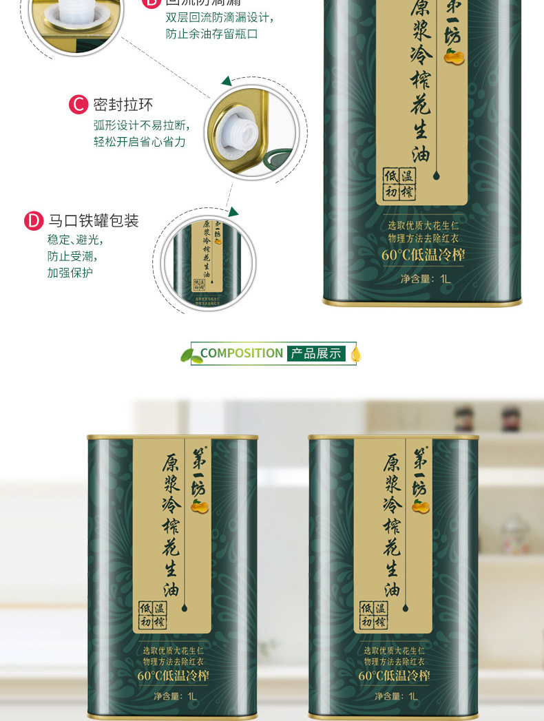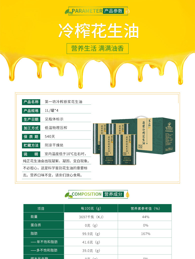商品名称:【京东/顺丰配送】第一坊原浆冷榨花生油铁罐礼盒1L*4罐