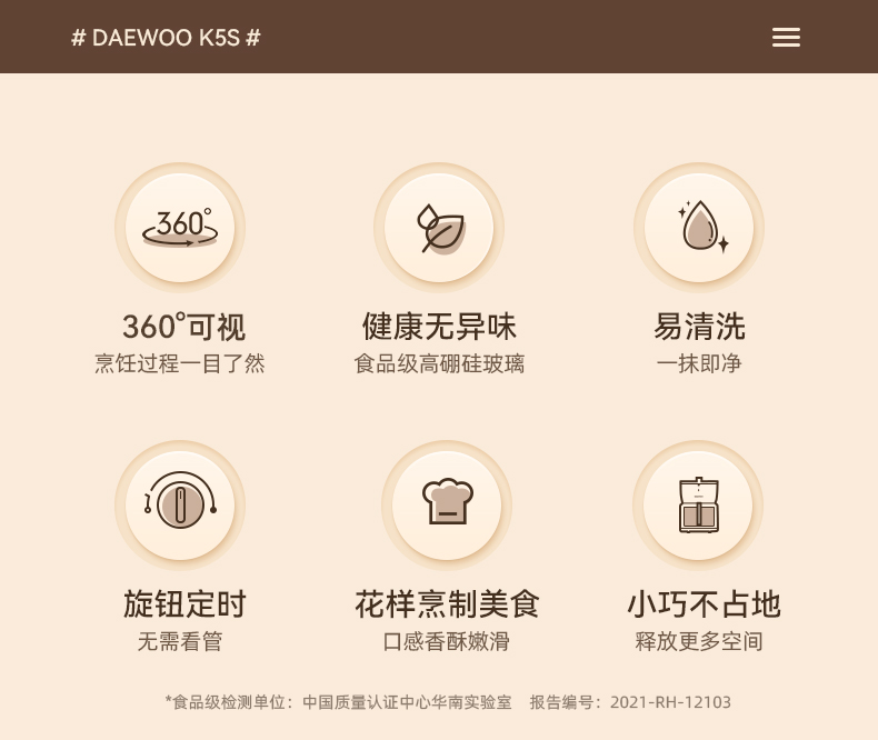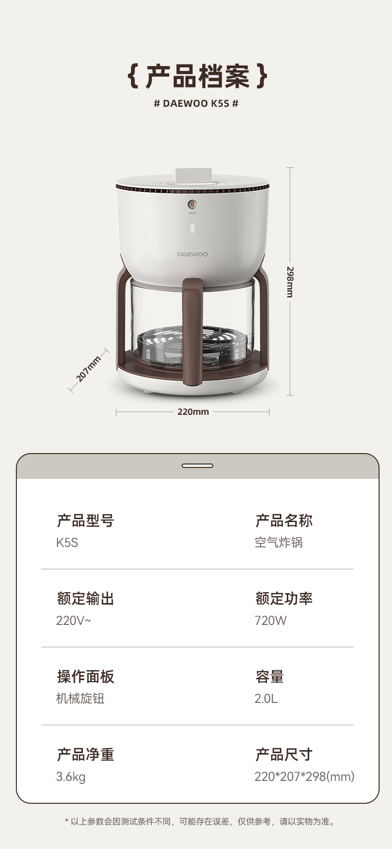 商品名称:DAEWOO/大宇2升小沙漏空气炸锅K5S