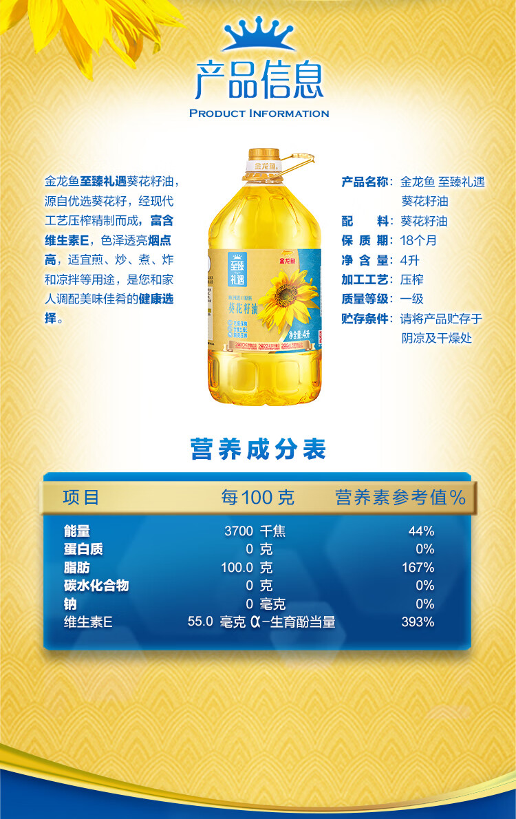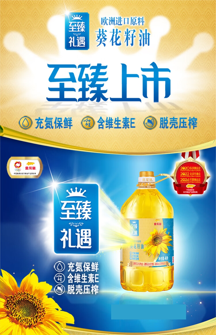 商品名称:【京东/顺丰配送】金龙鱼至臻礼遇葵花籽油4L