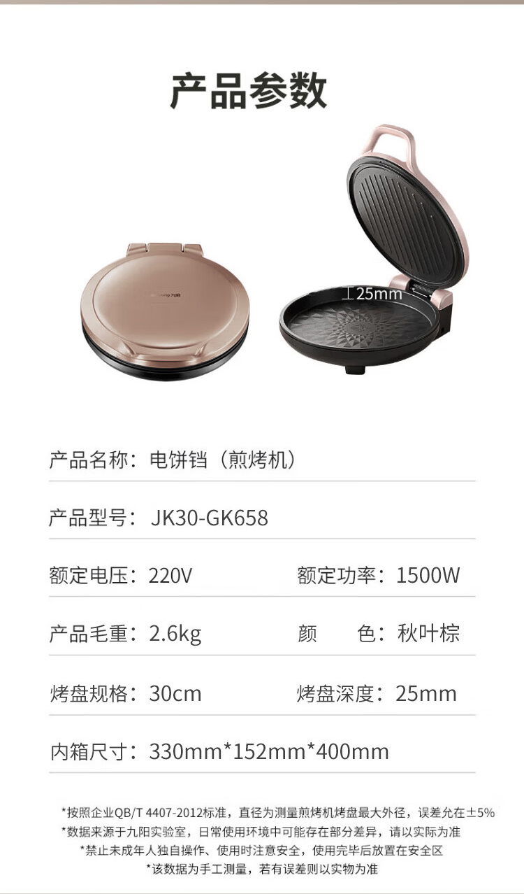 商品名称:【京东/顺丰/德邦配送】Joyoung/九阳30cm电饼铛JK30-GK658