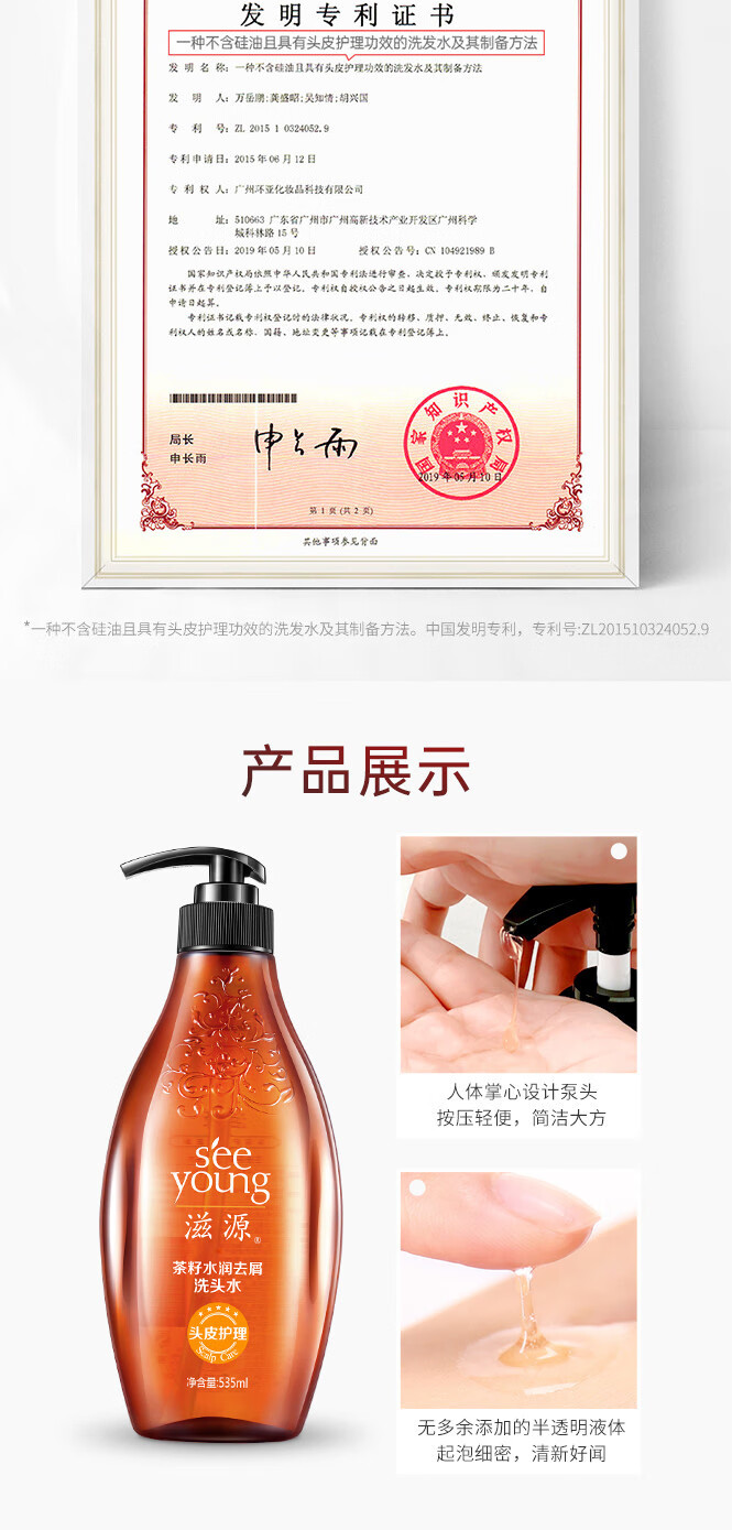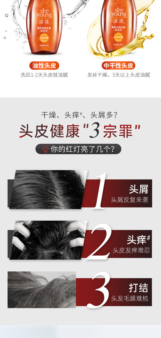 商品名称:seeyoung/滋源茶籽水润去屑中干性洗头水535ml