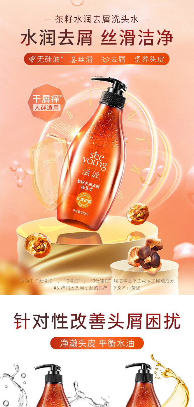 seeyoung/滋源茶籽水润去屑中干性洗头水535ml