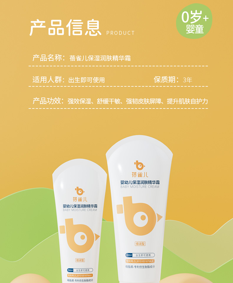 商品名称:蓓雀儿倍润型婴幼儿保湿润肤精华霜100g