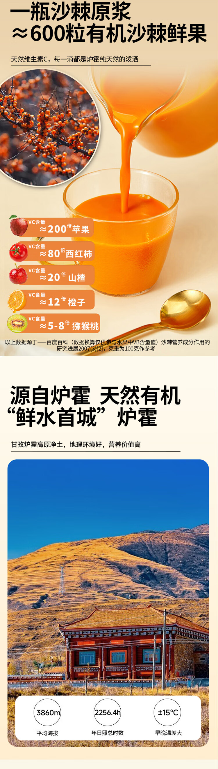 xianjee/鲜记鲜水金谷有机沙棘原浆30m1*10袋