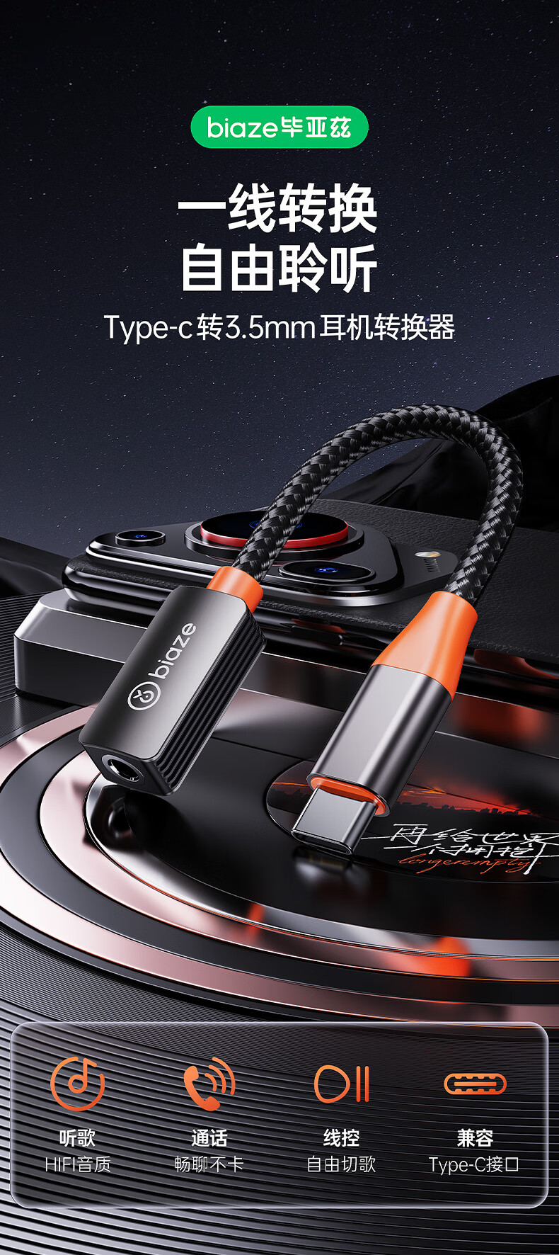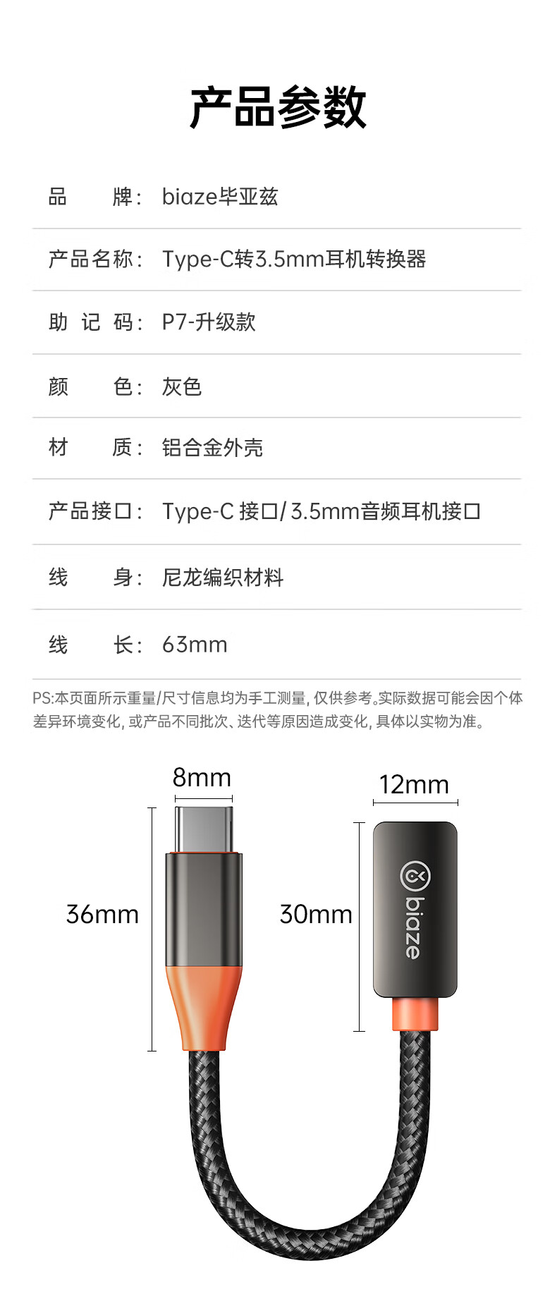 商品名称:BIAZE/毕亚兹Type-C转3.5mm耳机转换器P7-升级款