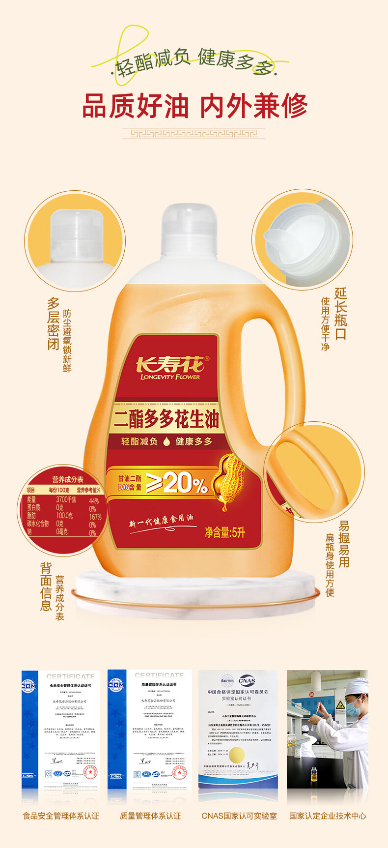 商品名称:【京东/顺丰配送】长寿花二酯多多花生油5L
