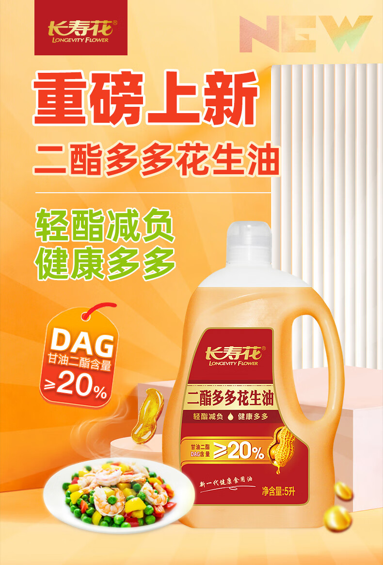 【京东/顺丰配送】长寿花二酯多多花生油5L