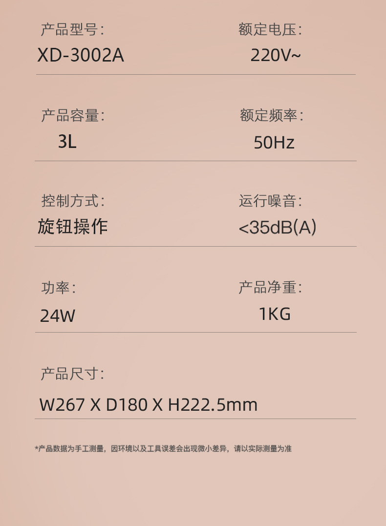 商品名称:【顺丰配送】SEEDEN/西点3升加湿器XD-3002A