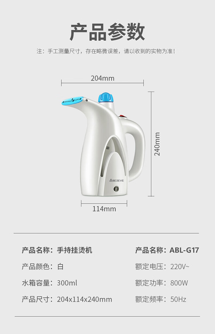 商品名称:【京东配送】ABEREVE/艾贝丽手持挂烫机ABL-G17