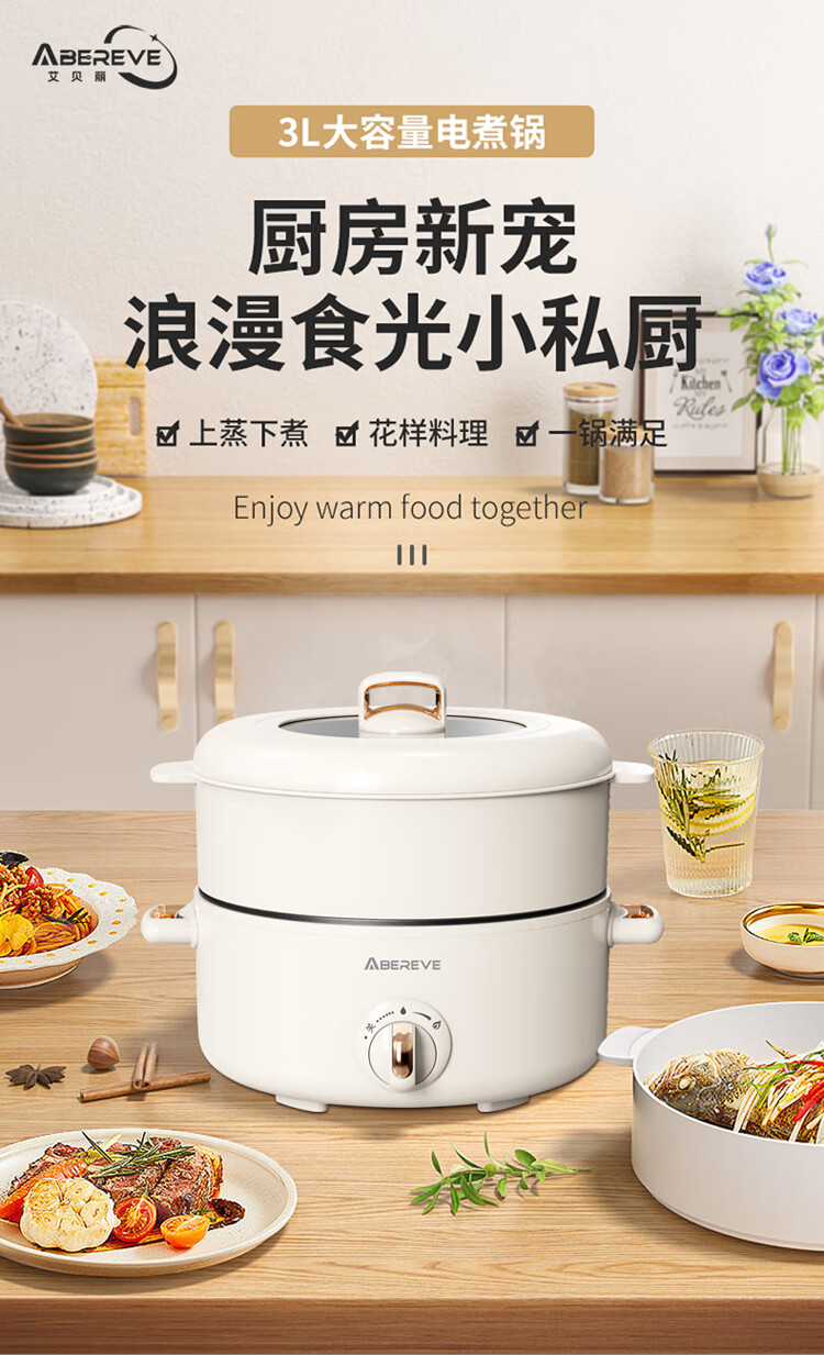 【京东配送】ABEREVE/艾贝丽3升多功能电火锅ABL-B31