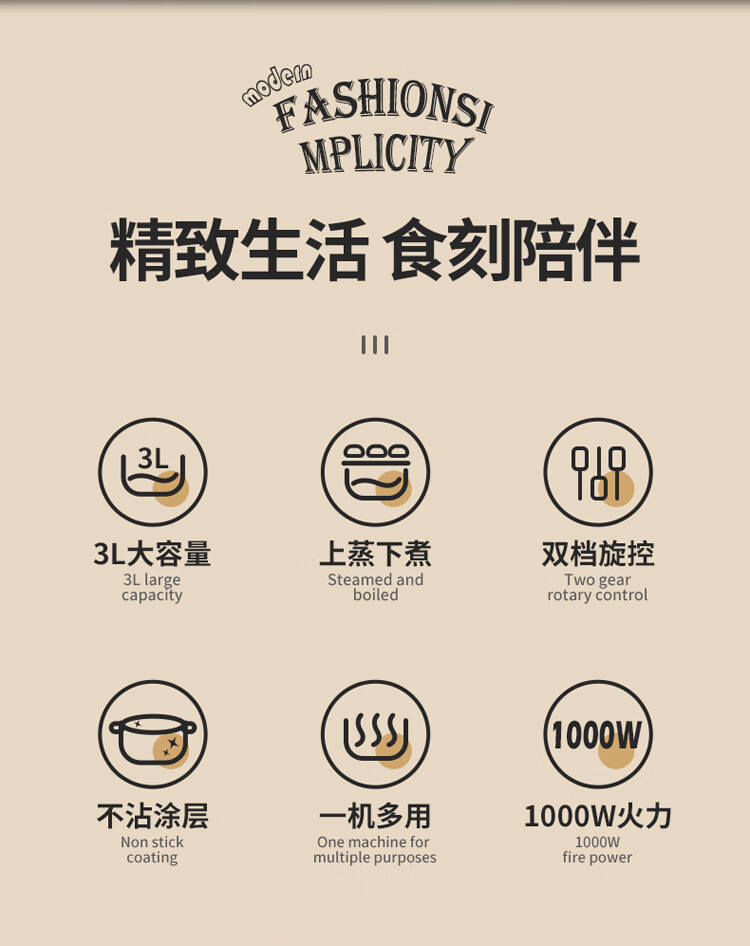 商品名称:【京东配送】ABEREVE/艾贝丽3升多功能电火锅ABL-B31