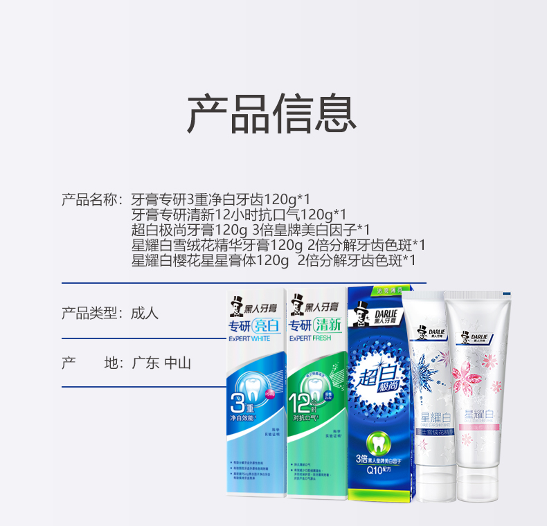 商品名称:DARLIE/好来星耀极尚精品牙膏套装5只装