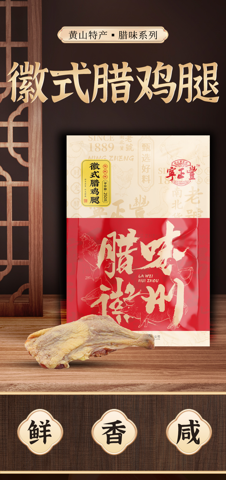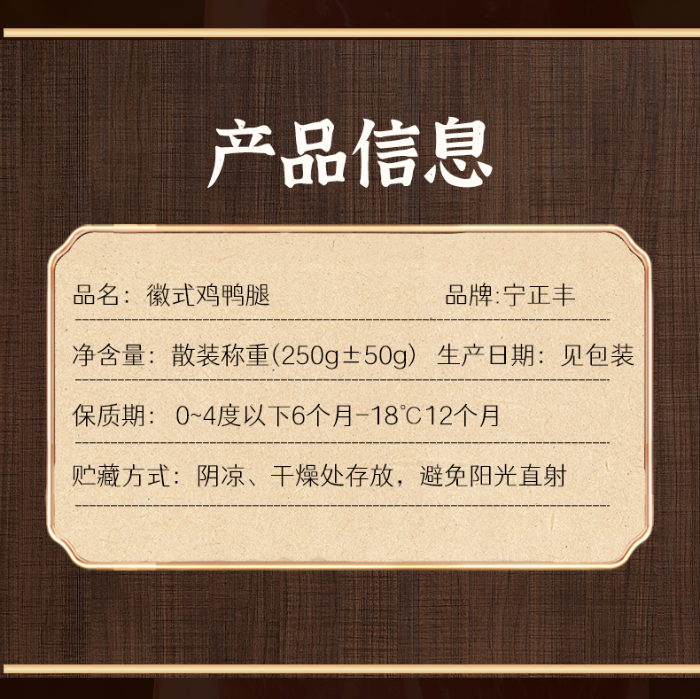 商品名称:宁正丰徽式腊鸡腿约250g±50g