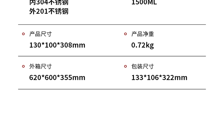 商品名称:FAGOR/法格1500毫升随行保温壶FG-HH15001