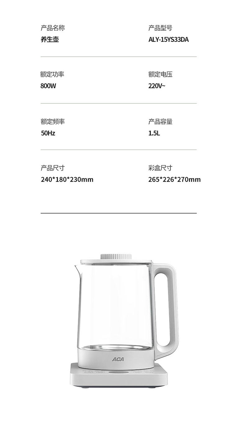 商品名称:ACA/北美电器1.5升多功能养生壶ALY-15YS33DA